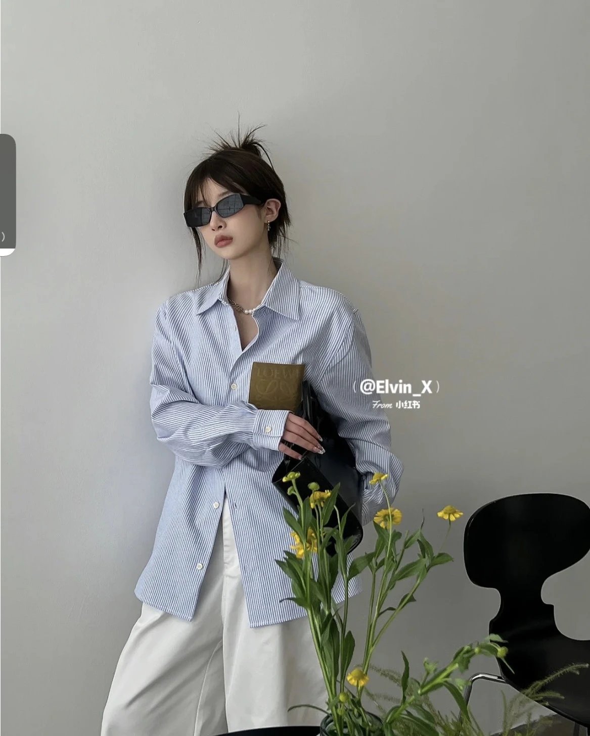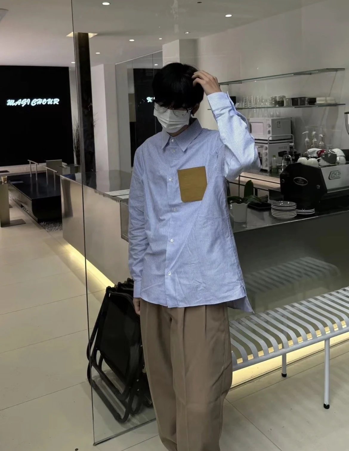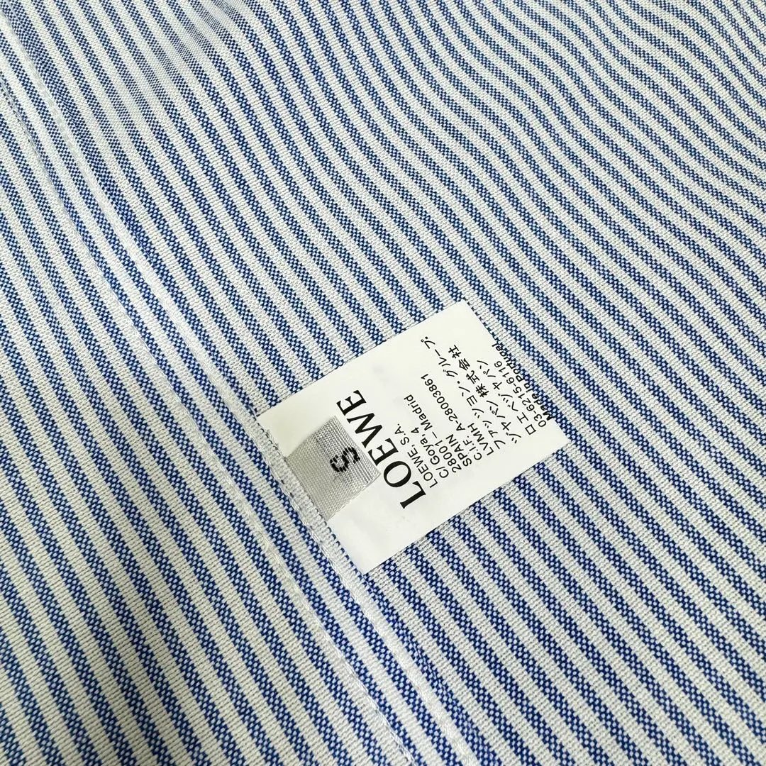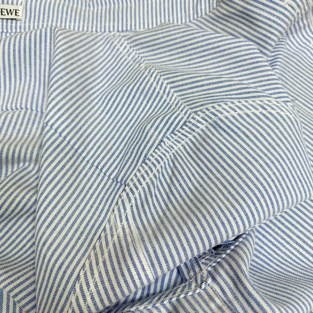 LOEWE Shirt Pocket Button Striped Shirt Loose Casual Long Sleeve Shirt with Leather Label os Cardigan Jacket Unisex Inner Layer24ss Autumn and Winter New Products