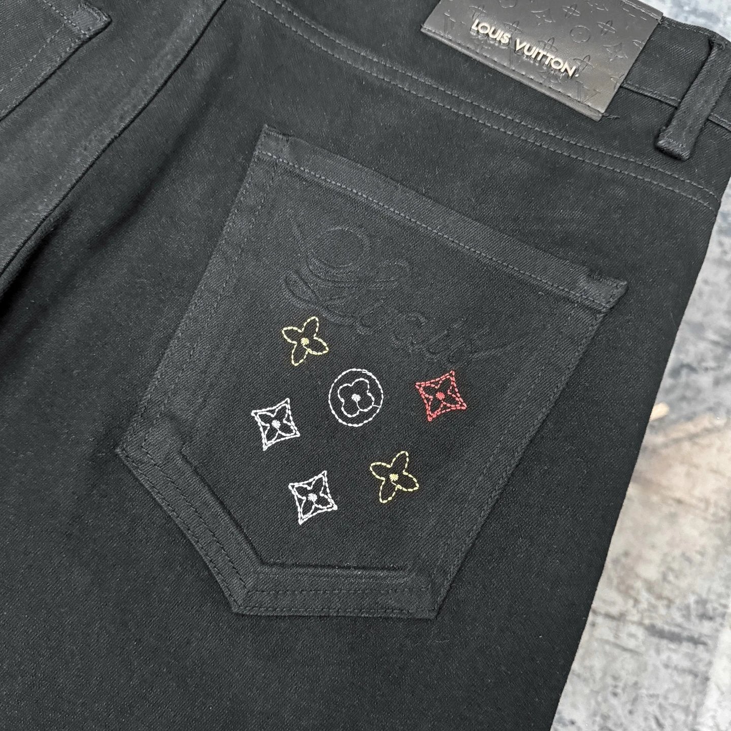 Louis Vuitton LV 25SS New Pocket LV Monogram➕Embroidered Slim Fit Jeans-