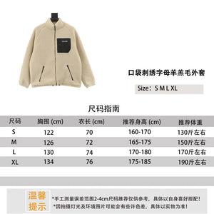 Celine Jackets Pocket Embroidered Letters Lamb Wool Coat for Men and Women