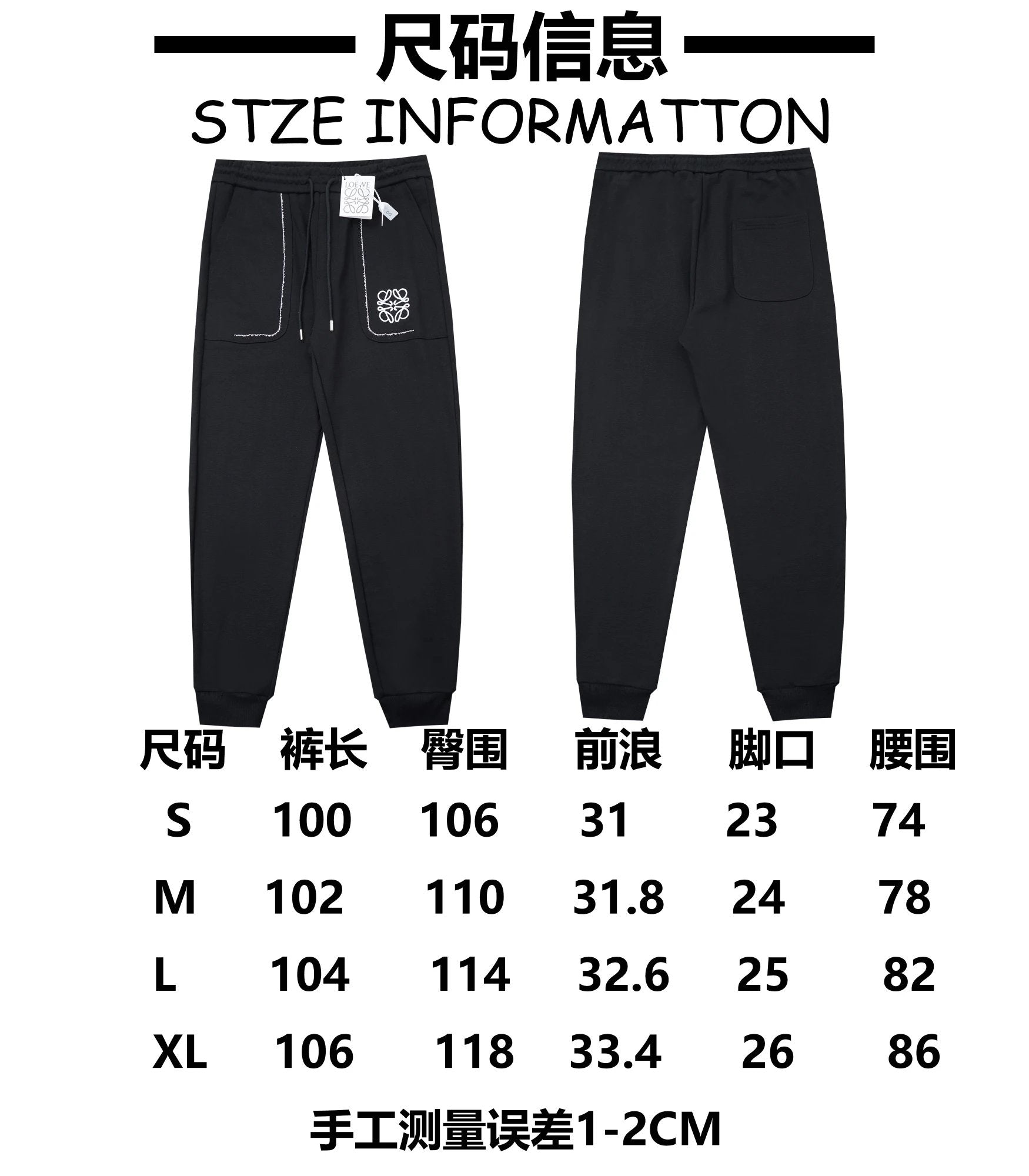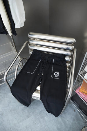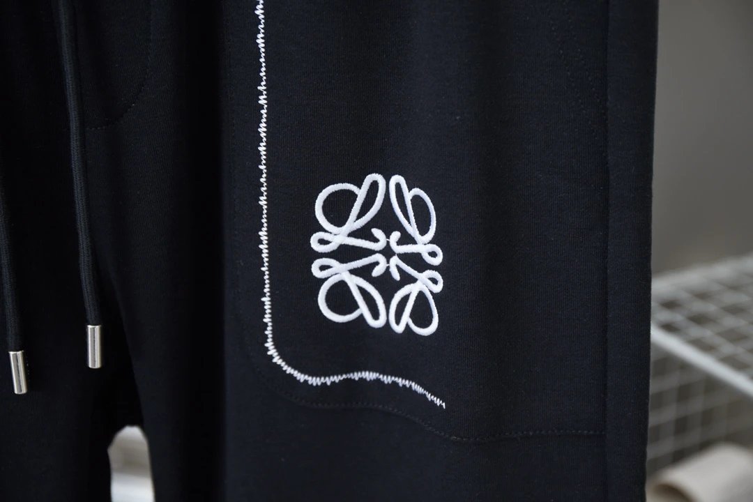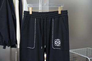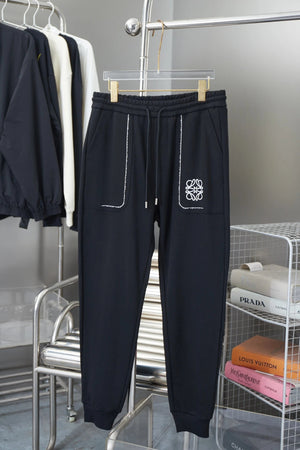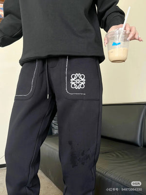 LOEWE Sweatpants Pocket Embroidery logo Drawstring Jogger Sweatpants for Men and Women, Autumn and Winter Loose Fit, High Waist, Color Block, Plus Size, Casual Pants