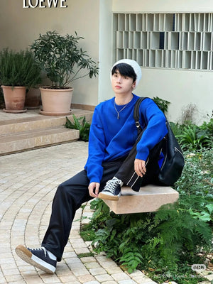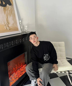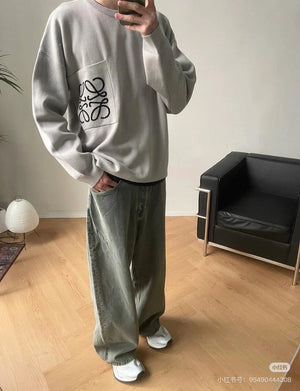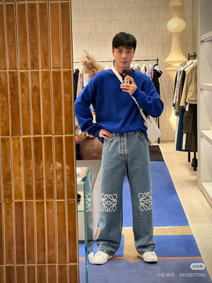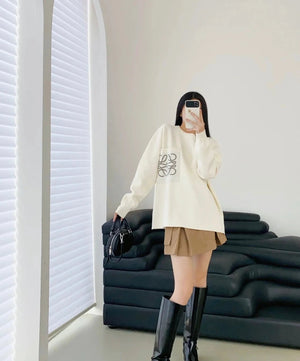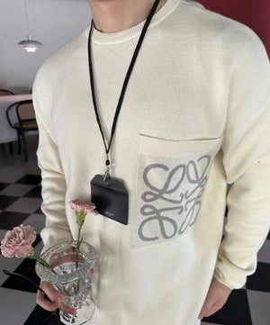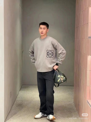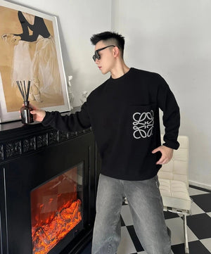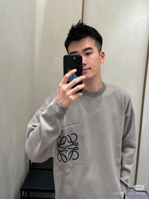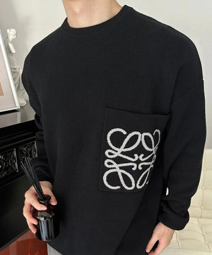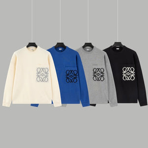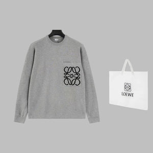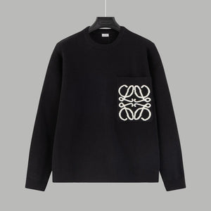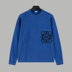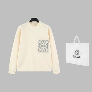 LOEWE Sweater Pocket Jacquard Logo Round Neck Pullover Knit Sweater Casual Loose Versatile Thickened Warm Inner Layer Top os Unisex Style24ss Autumn and Winter New Products
