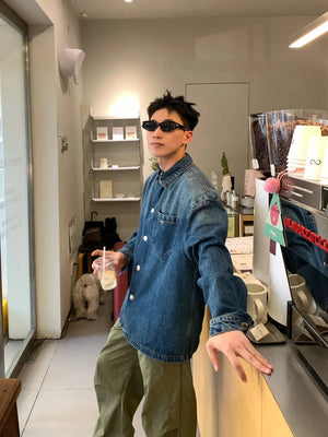 PRADA Shirt Pocket Triangle Mark Tannin Denim Shirt Jacket Same Style for Men and Women