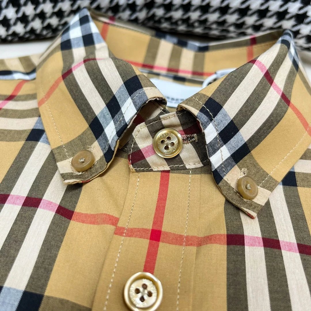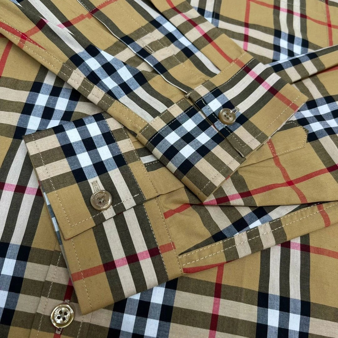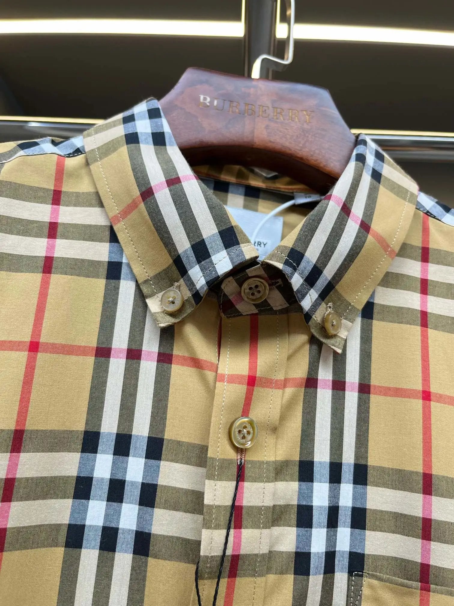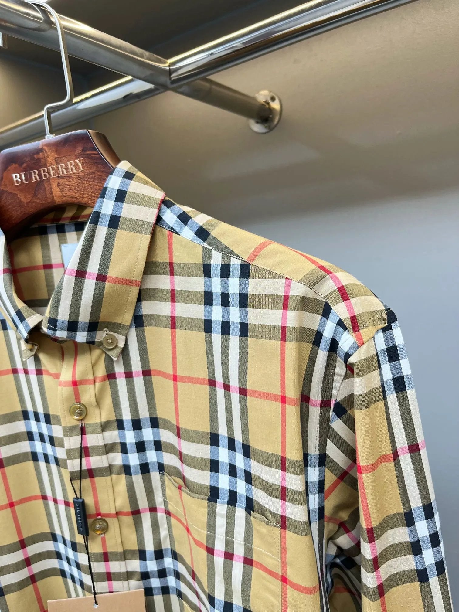 Burberry Shirt Pointed Collar Button Shirt Collar Vintage Plaid Shirt Classic Yellow Unisex Versatile Casual