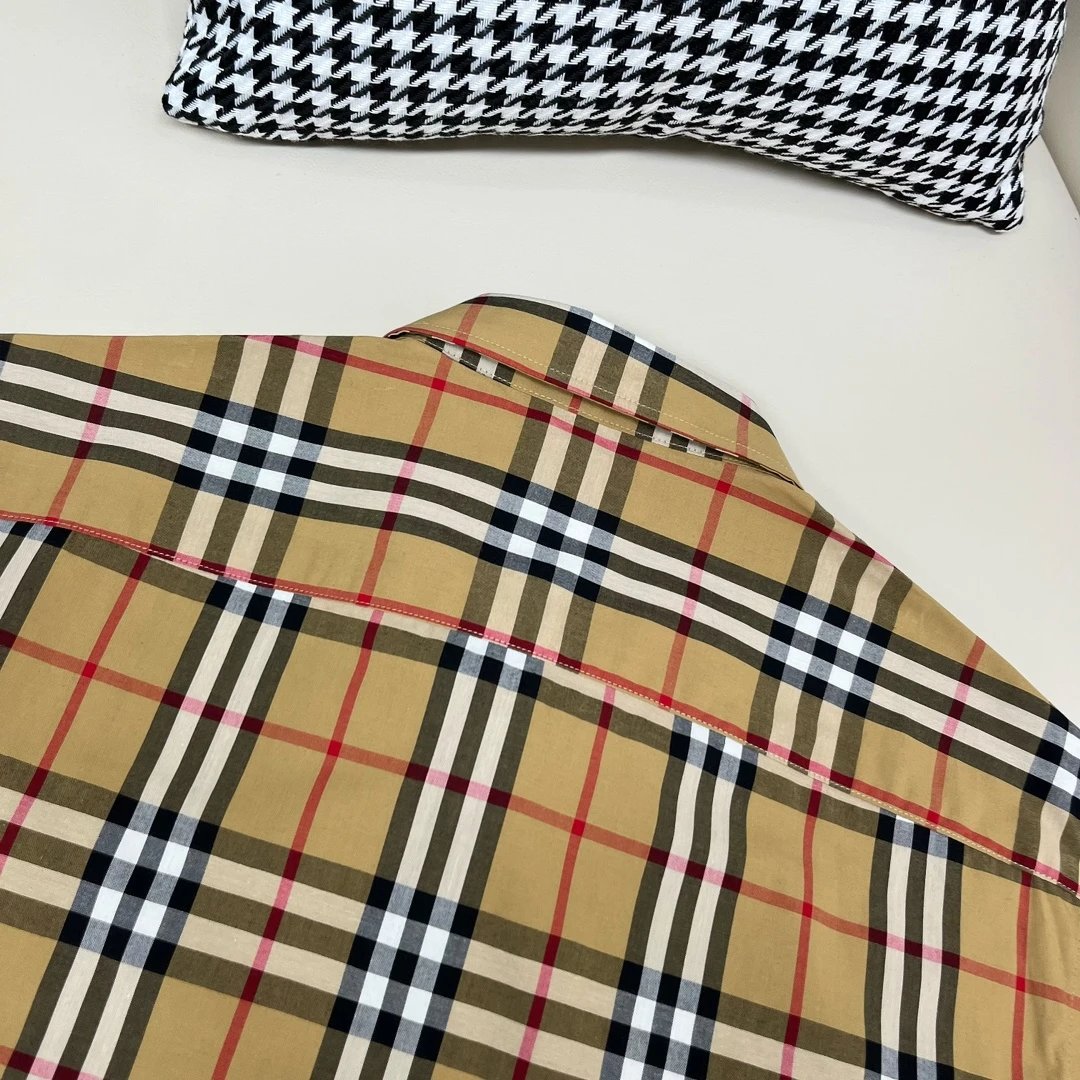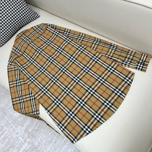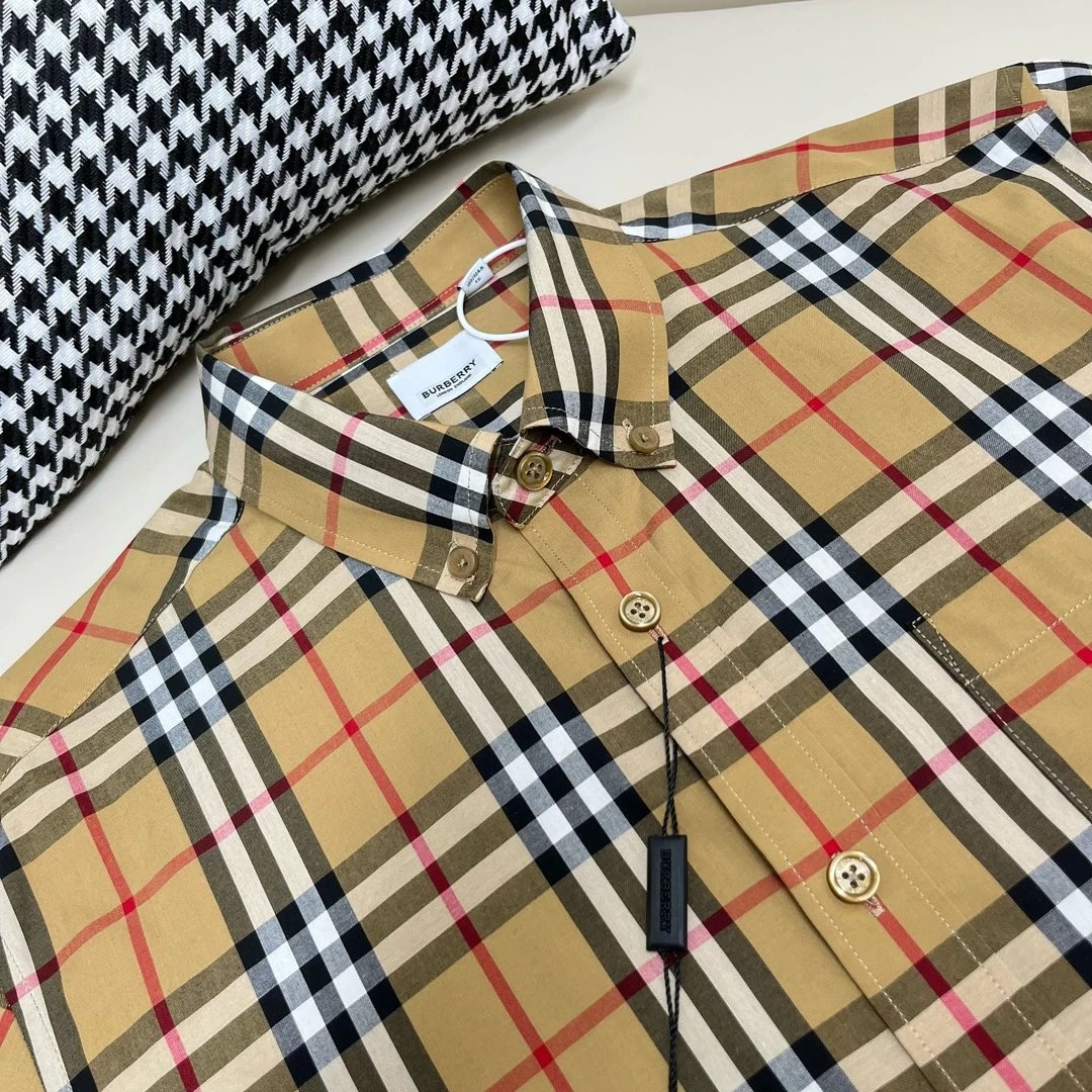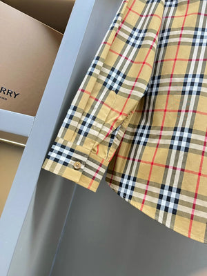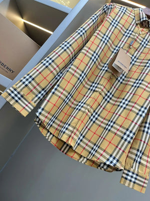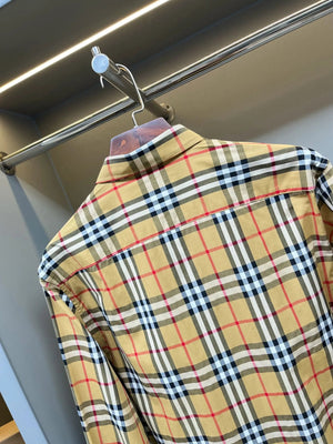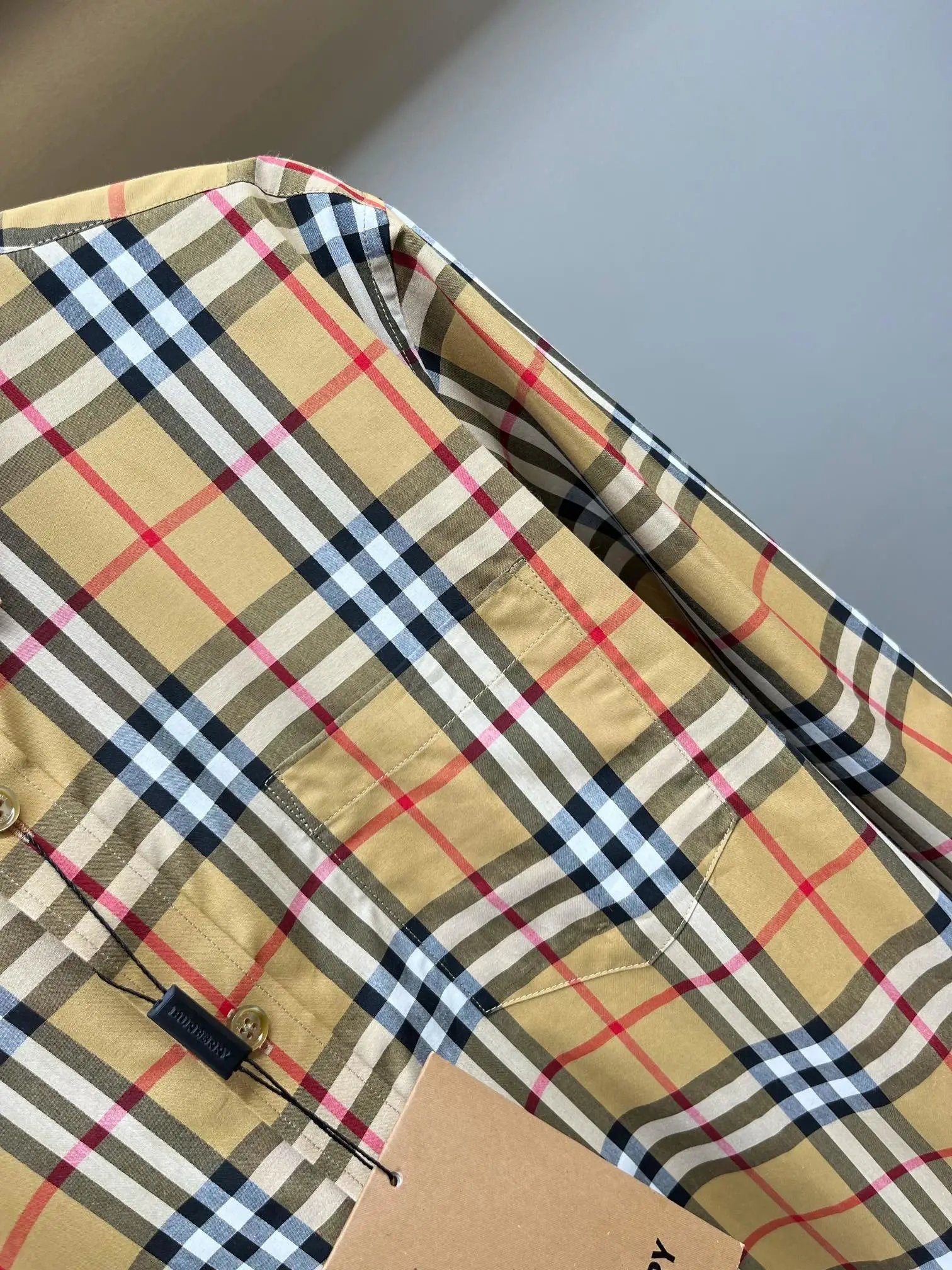 Burberry Shirt Pointed Collar Button Shirt Collar Vintage Plaid Shirt Classic Yellow Unisex Versatile Casual