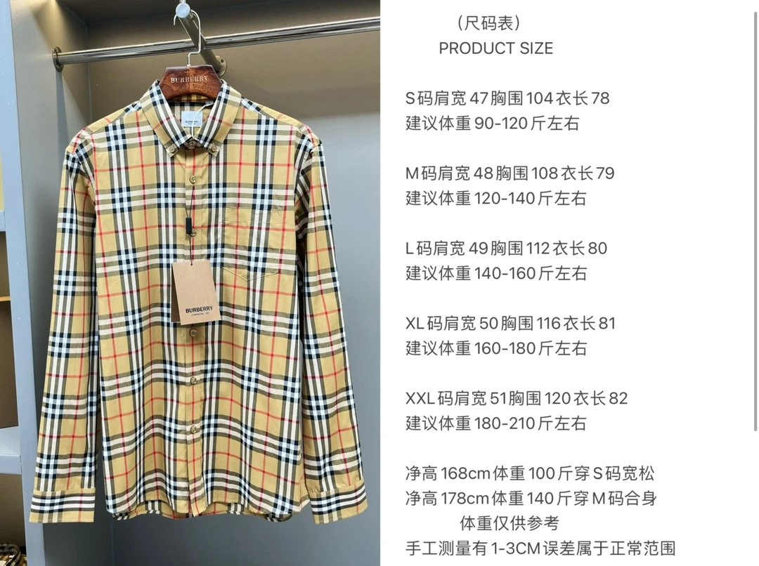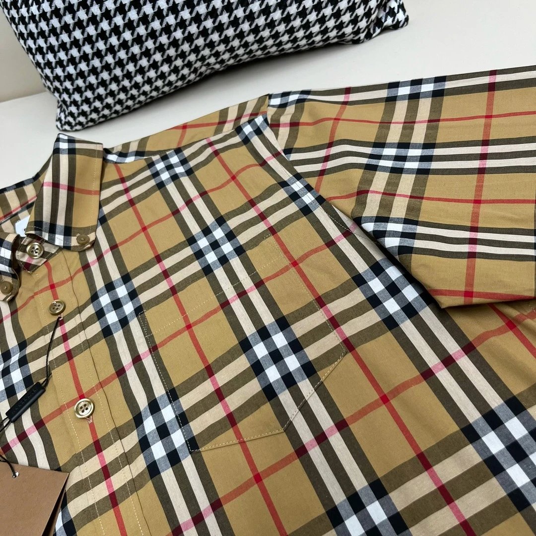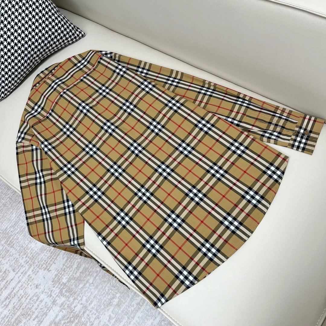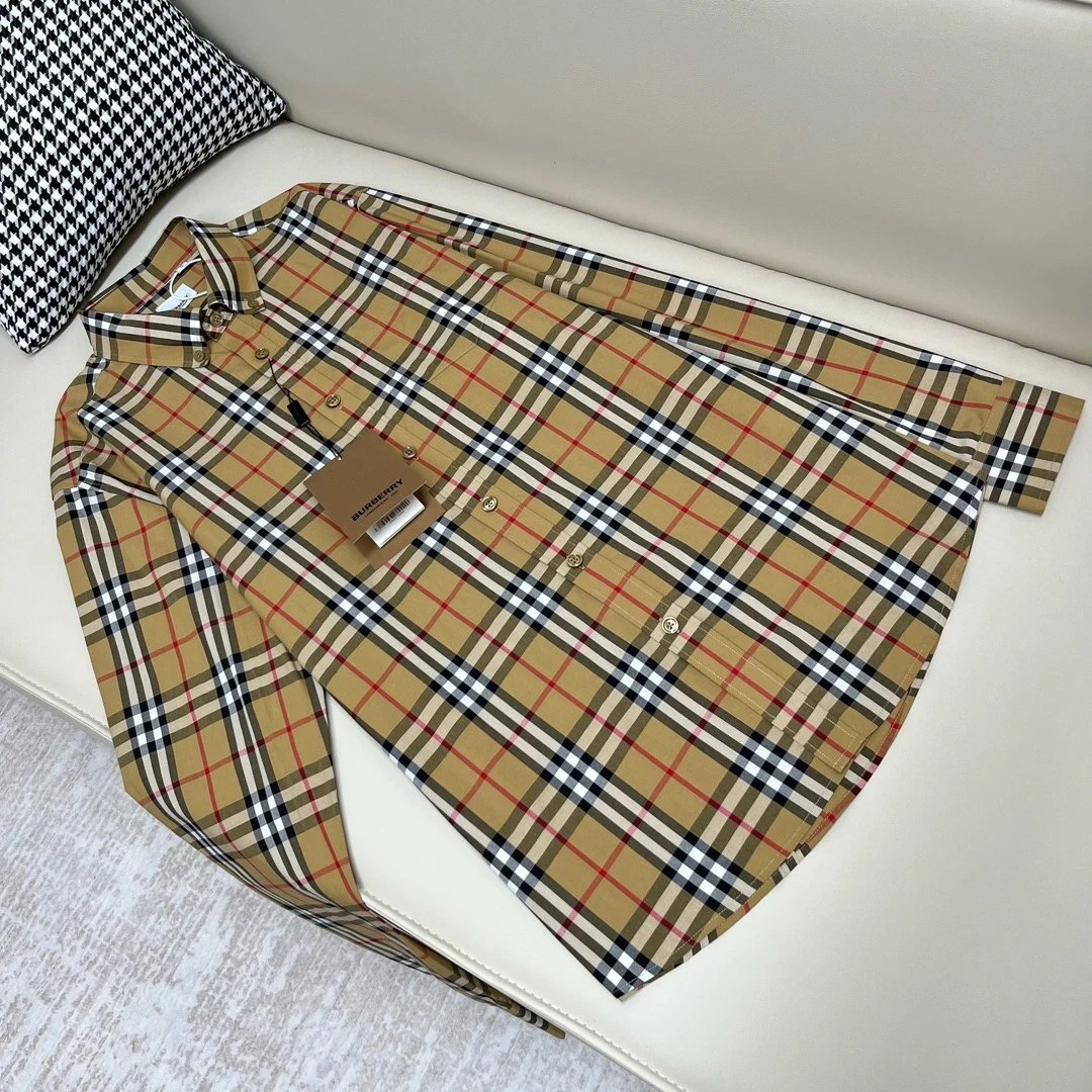 Burberry Shirt Pointed Collar Button Shirt Collar Vintage Plaid Shirt Classic Yellow Unisex Versatile Casual