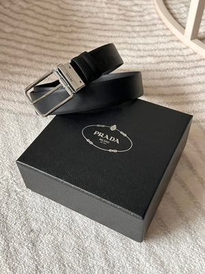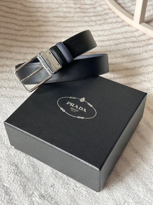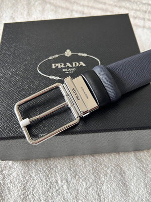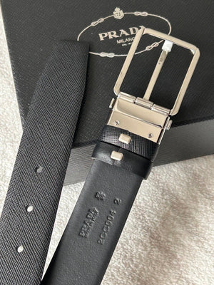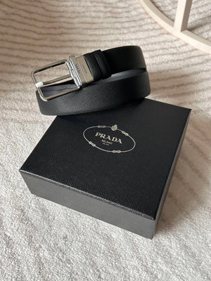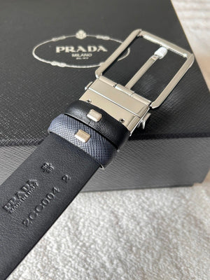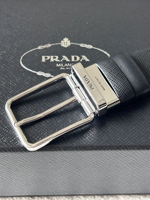 PRADA Belt Top version 【First Layer Cowhide】Men's Belt P Home Classic Business Belt Fashion Casual Width:3.4cm Boutique Pattern Automatic Buckle316Fine Steel Made Selected First Layer Cowhide Italian Leather Embryo PA Sliding Teeth Are Strong and Durable
