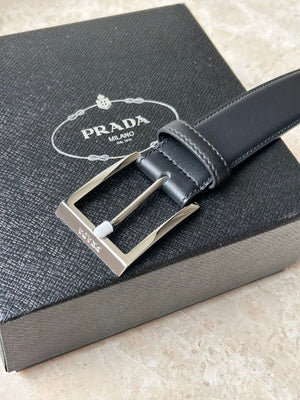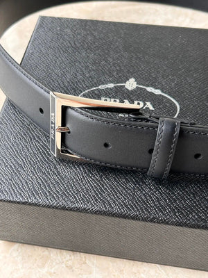 PRADA Belt Top version 【First Layer Cowhide】Men's Belt P Home Classic Business Belt Fashion Casual Width:3.4cm Boutique Pattern Automatic Buckle316Fine Steel Made Selected First Layer Cowhide Italian Leather Embryo PA Sliding Teeth Are Strong and Durable