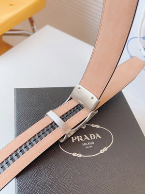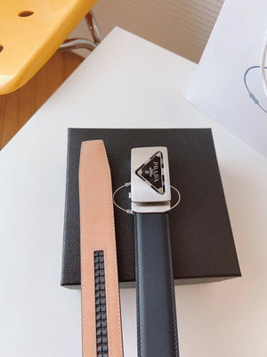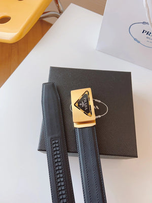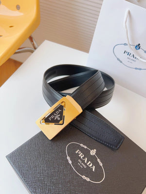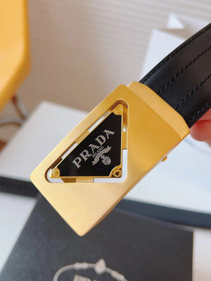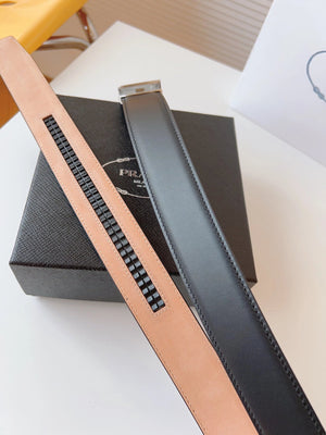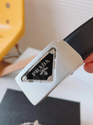 PRADA Belt Top version 【First Layer Cowhide】Men's Belt P Home Classic Business Belt Fashion Casual Width:3.5cm Boutique Pattern Automatic Buckle316Fine Steel Made Selected First Layer Cowhide Italian Leather Embryo PA Sliding Teeth Are Strong and Durable