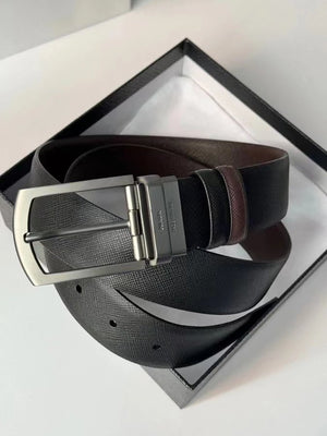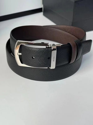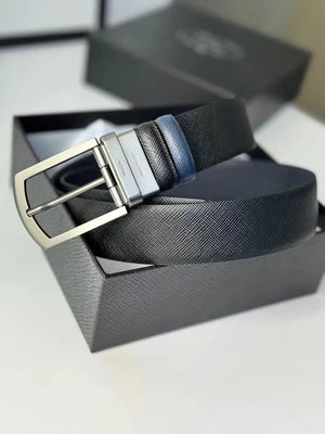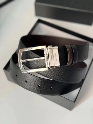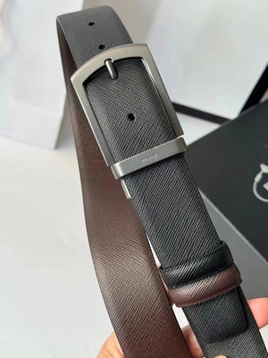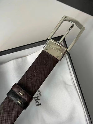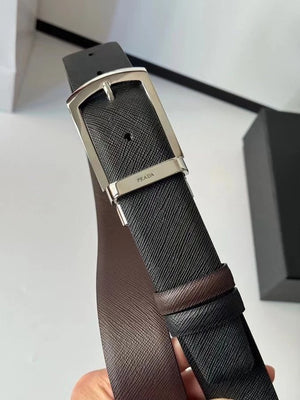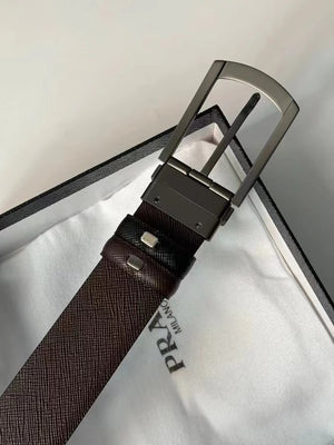 PRADA Belt Top version 【First Layer Cowhide】Men's Belt P Home Classic Business Belt Fashion Casual Width:3.5cm Boutique Pattern Automatic Buckle316Fine Steel Made Selected First Layer Cowhide Italian Leather Embryo PA Sliding Teeth Are Strong and Durable