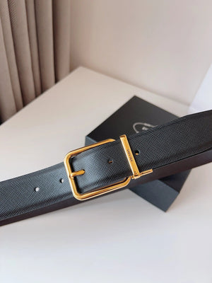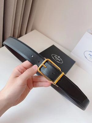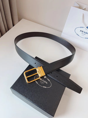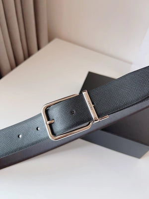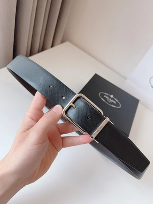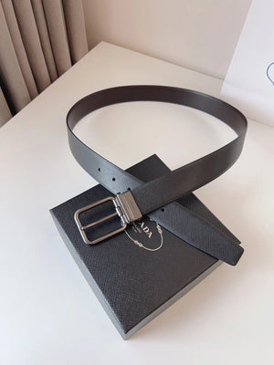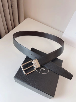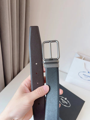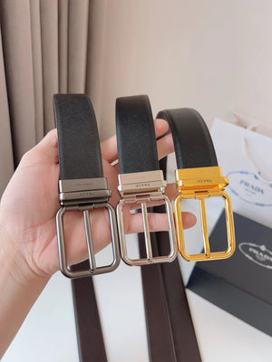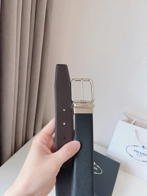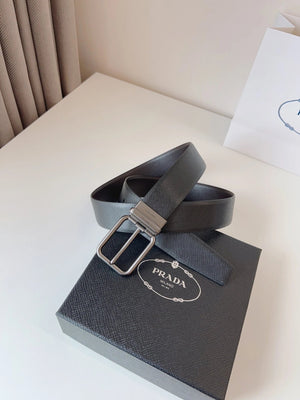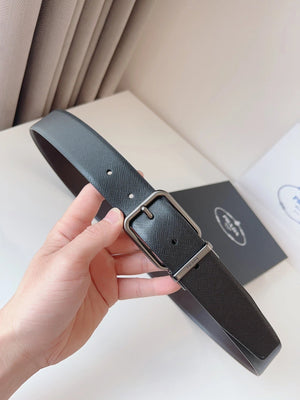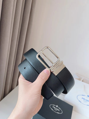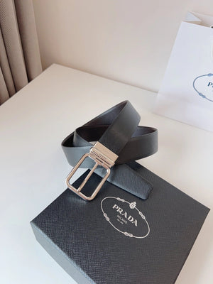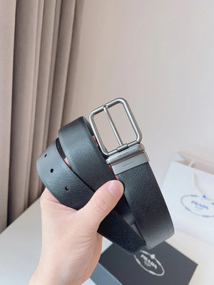 PRADA Belt Top version 【First Layer Cowhide】Men's Belt P Home Classic Business Belt Fashion Casual Width:3.5cm Boutique Pattern Automatic Buckle316Fine Steel Made Selected First Layer Cowhide Italian Leather Embryo PA Sliding Teeth Are Strong and Durable