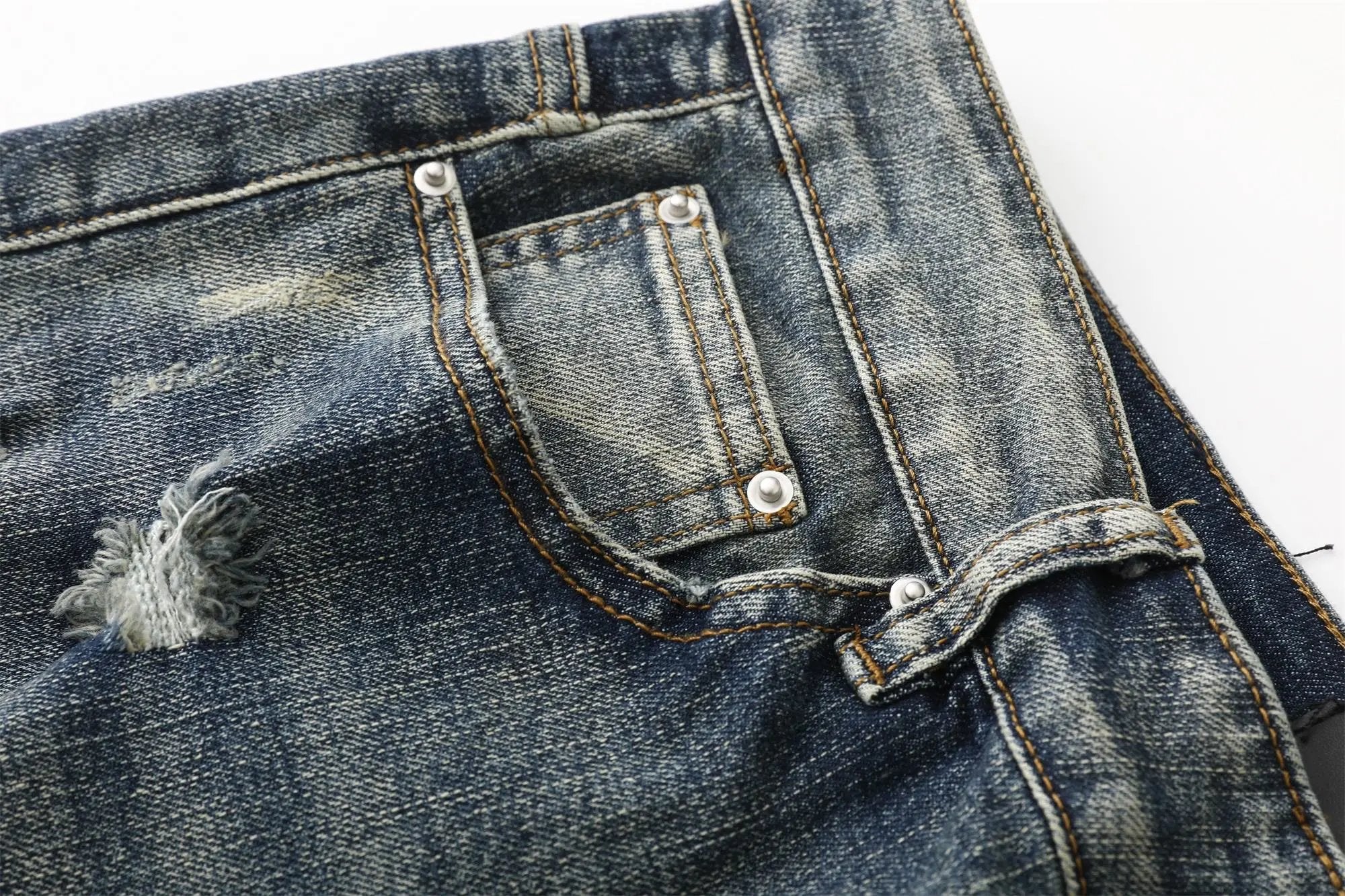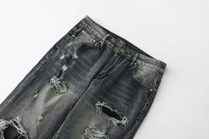 Amiri Jeans Pre-cut holes from the front logo25ss Spring Summer New Straight Leg Jeans Unisex Slim Fit Long Pants Loose