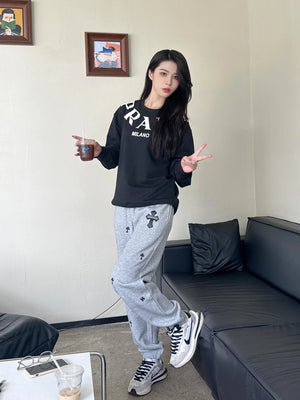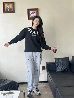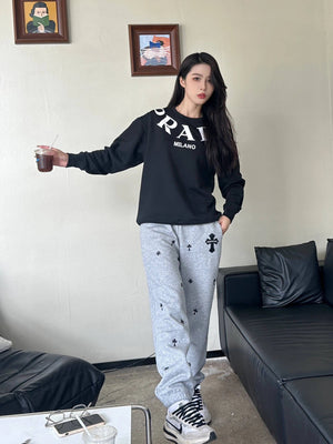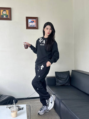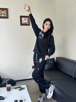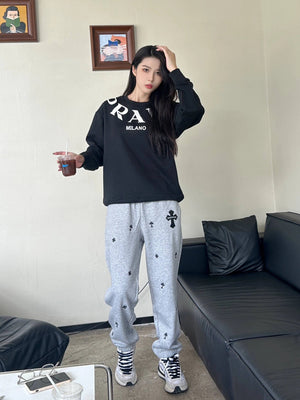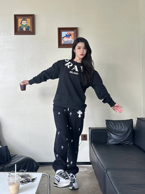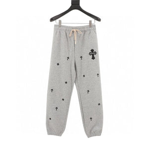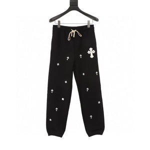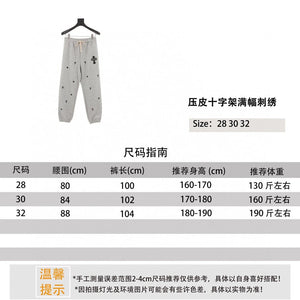 Chrome Hearts Sweatpants Press Leather shi Full-Width Embroidered Cotton Trousers for Men and Women