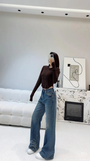 Casual and relaxed fit, high-waisted straight-leg pants that make you look taller and slimmer. The genuine leather tag at the back waist is very eye-catching, with vintage washed sand finish and multiple PP treatments. A must-have for autumn