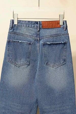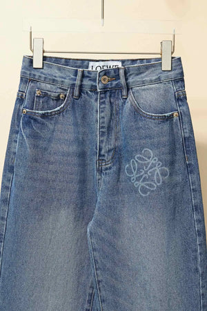 LOEWE Jeans Printed Denim Long Pants for Women Versatile Casual