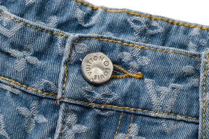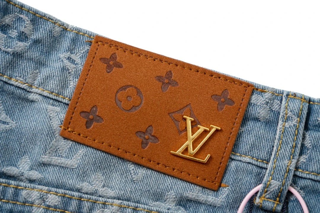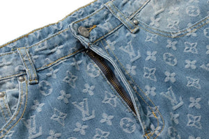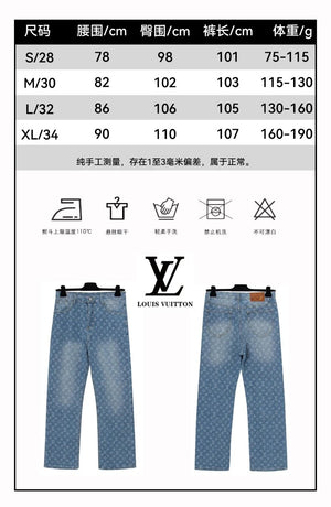 Louis Vuitton LV Jeans Printed with Old Flowers logo25ss Spring Summer New Straight Leg Jeans Unisex Slim Fit Long Pants Loose