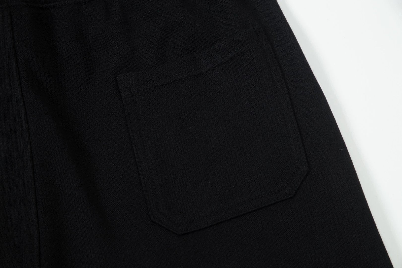 Elastic Waistband Black and White Drawstring Design Custom Drawstring Pockets with Slant Insert Pockets on Both Sides and a Small Pocket at the Back