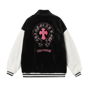 Top Version CH Crocs Heart Rabbit Mink Embroidery Sanskrit Cross Jacket Coat Baseball Jacket for Men and Women Winter Warmth