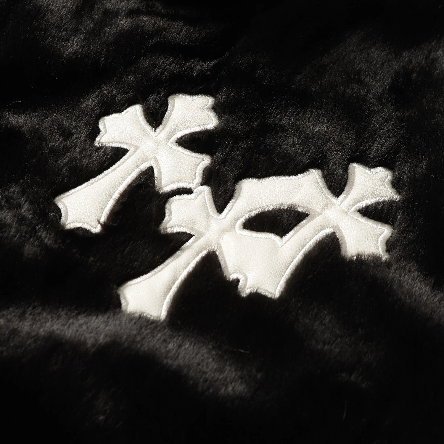 Chrome Hearts Jackets Rabbit Mink Embroidered Leather Baseball Jacket Men and Women Same Autumn and Winter New Loose Sports and Leisure All-Matching