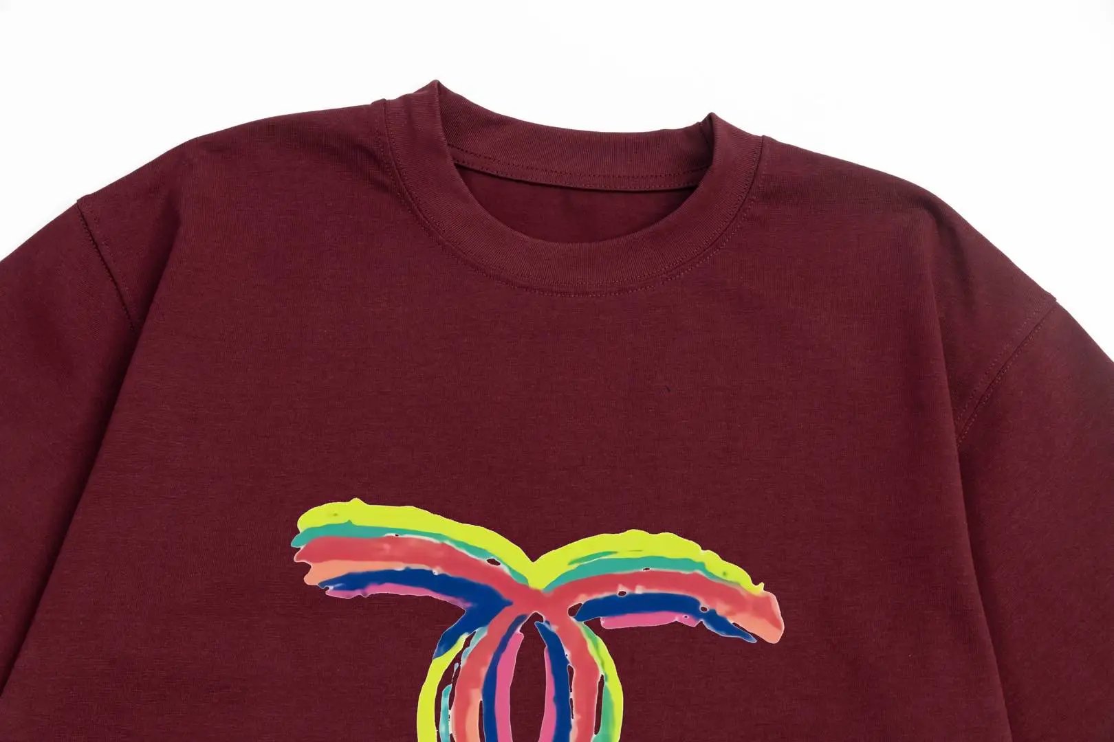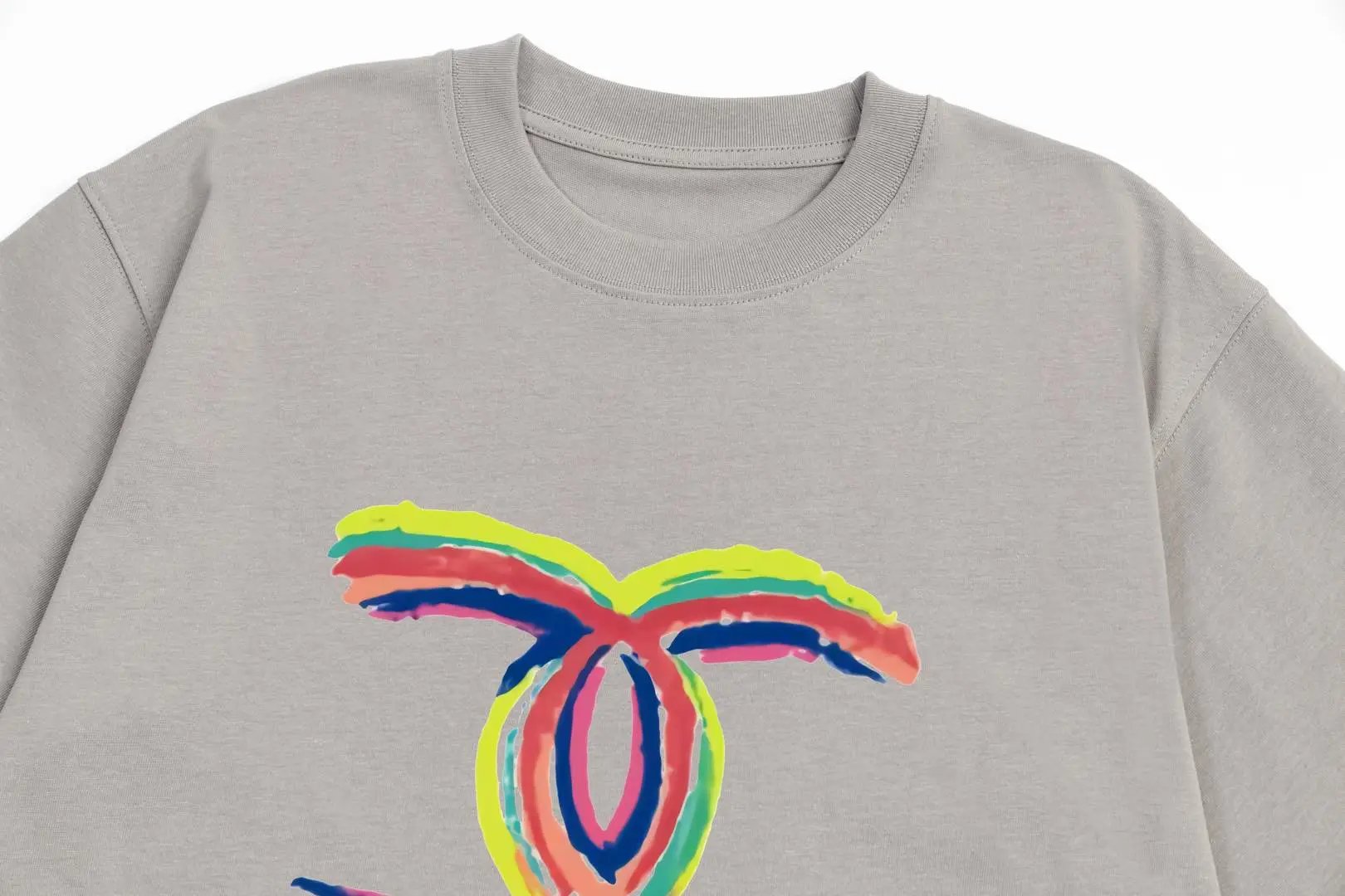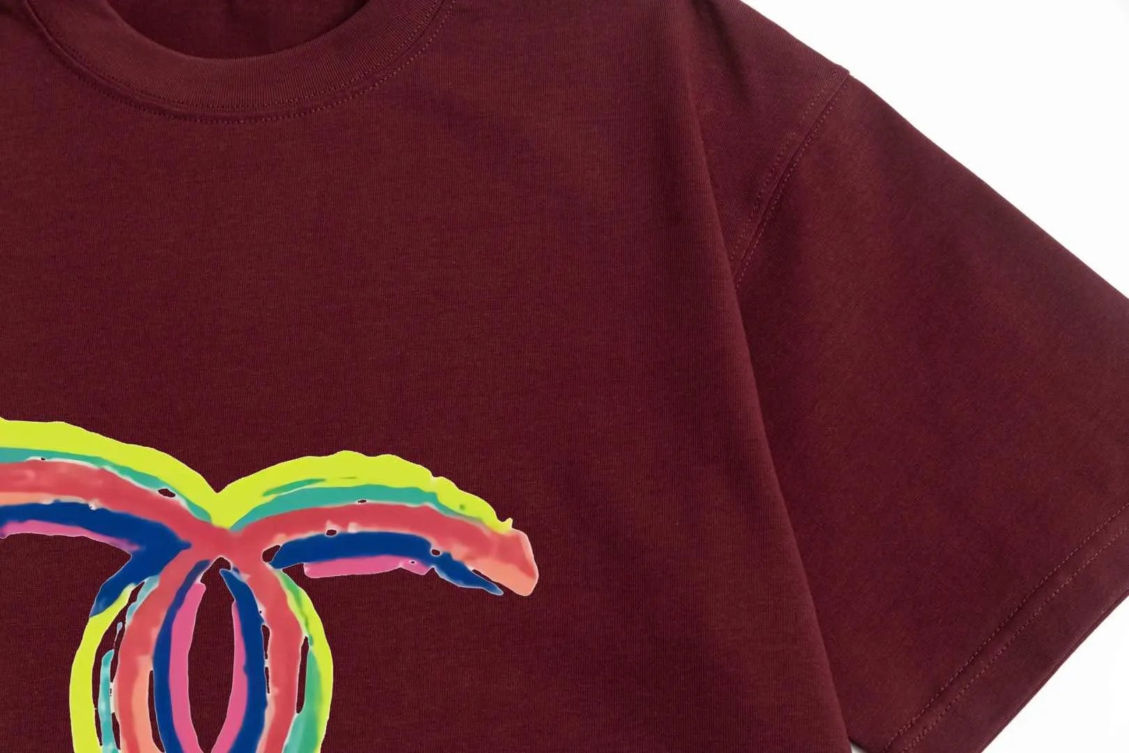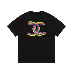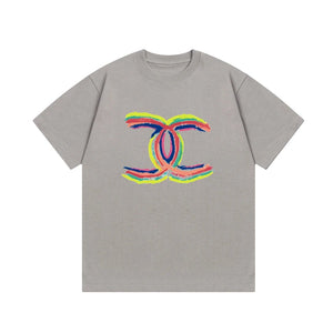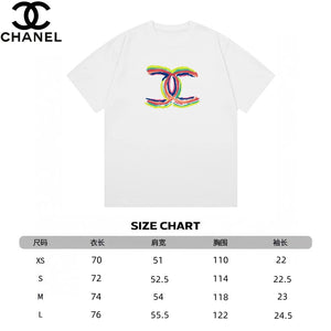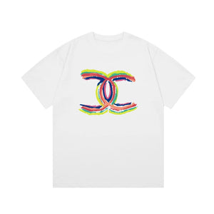 Chanel T-shirt Rainbow Letter Direct Print logo round Neck Short Sleeve25ss New Pure Cotton Unisex Style T T-shirt OS Loose Fit Base Shirt Top Half Sleeve T-Shirt