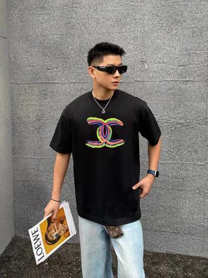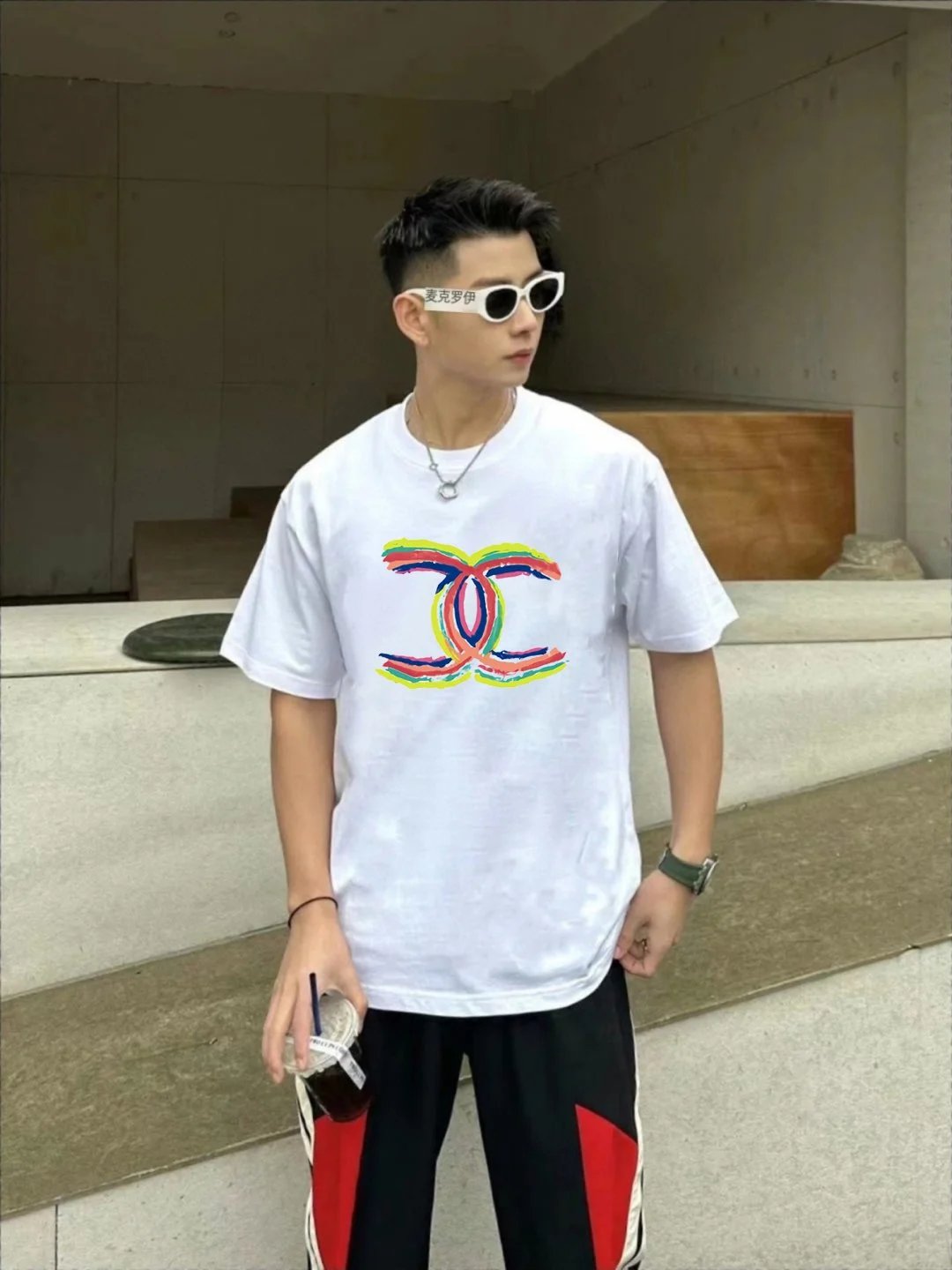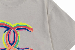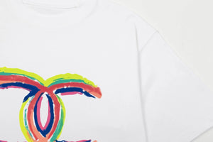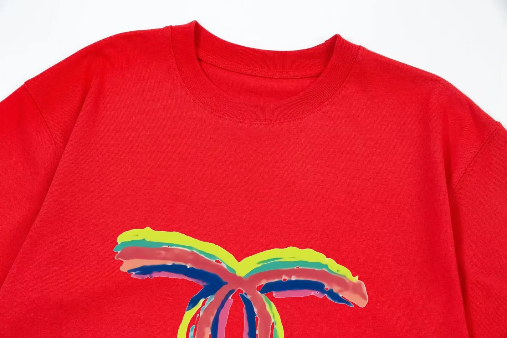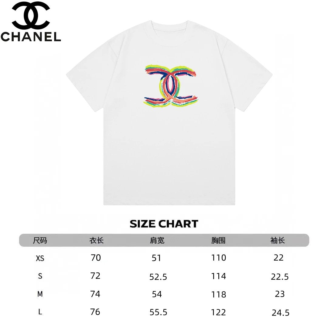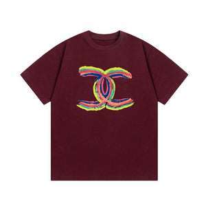 Chanel T-shirt Rainbow Letter Direct Print logo round Neck Short Sleeve25ss New Pure Cotton Unisex Style T T-shirt OS Loose Fit Base Shirt Top Half Sleeve T-Shirt