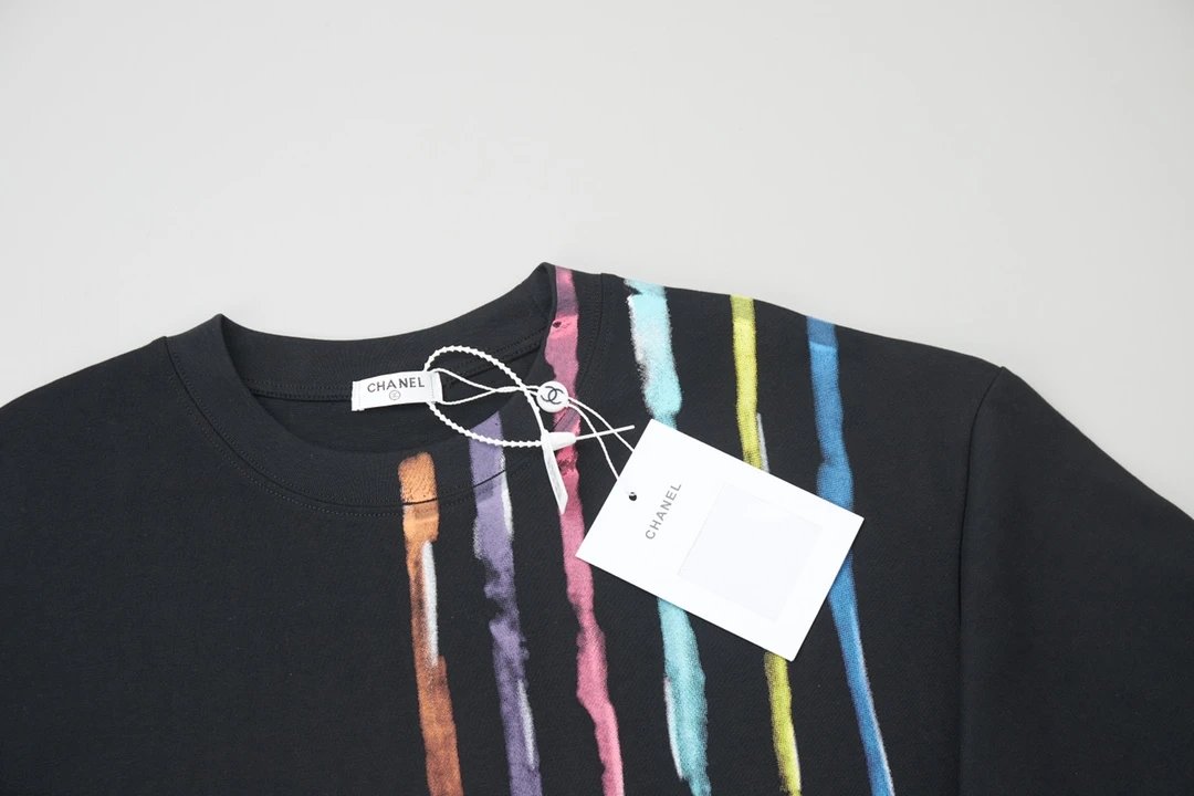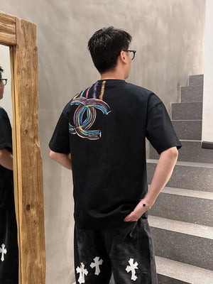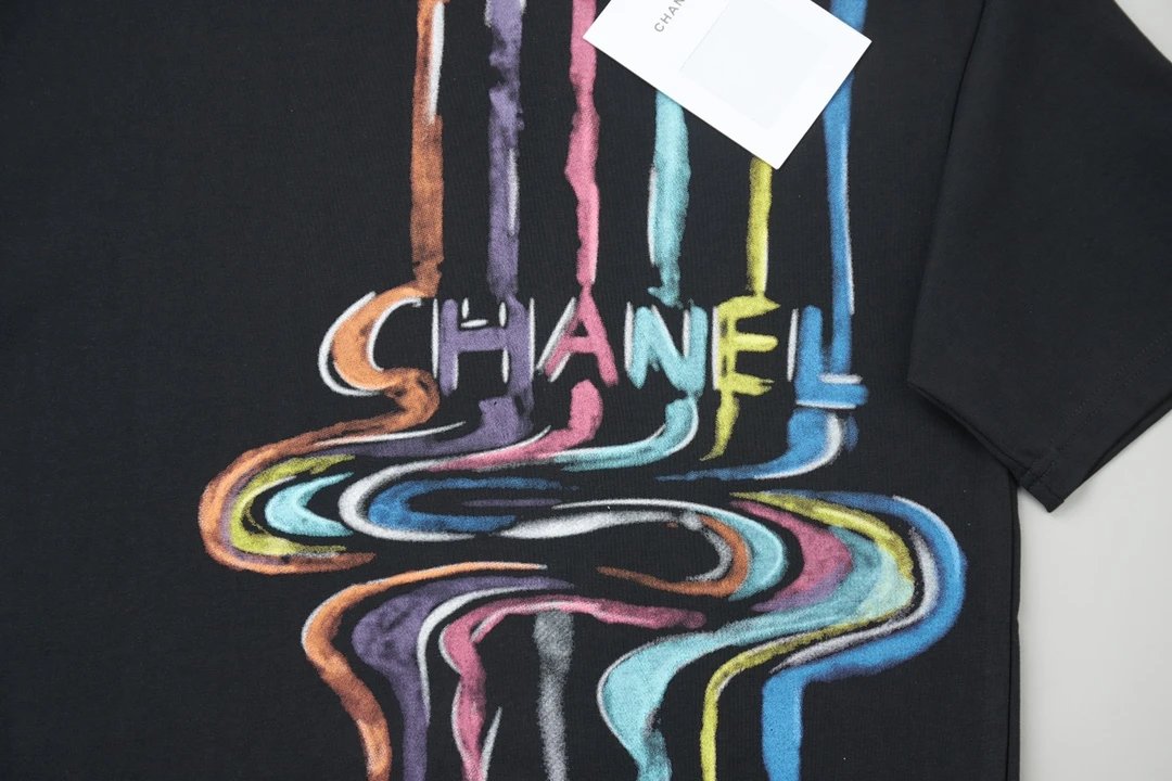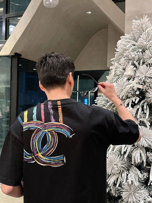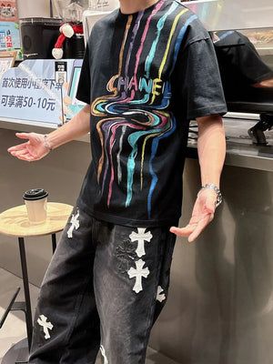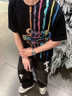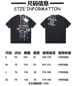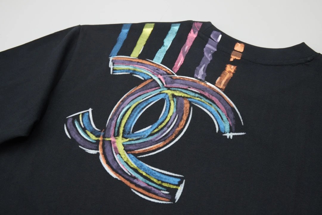 Chanel T-shirt Rainbow Pattern Print on the Chest logo round Neck Short Sleeve25ss New pure cotton T Unisex T-Shirt OS Drop Shoulder Loose Fit Base Shirt Top T-Shirt Short Sleeve