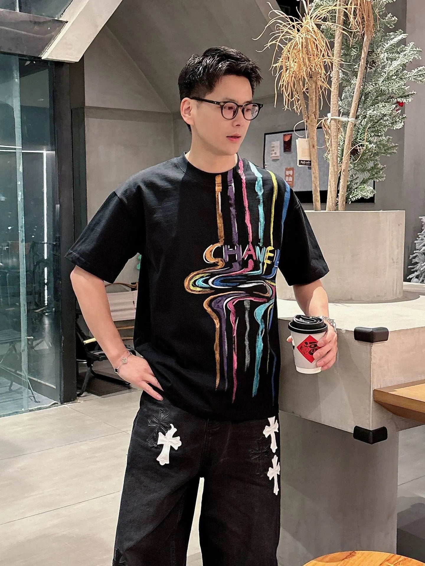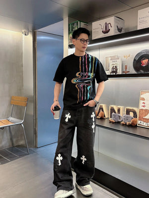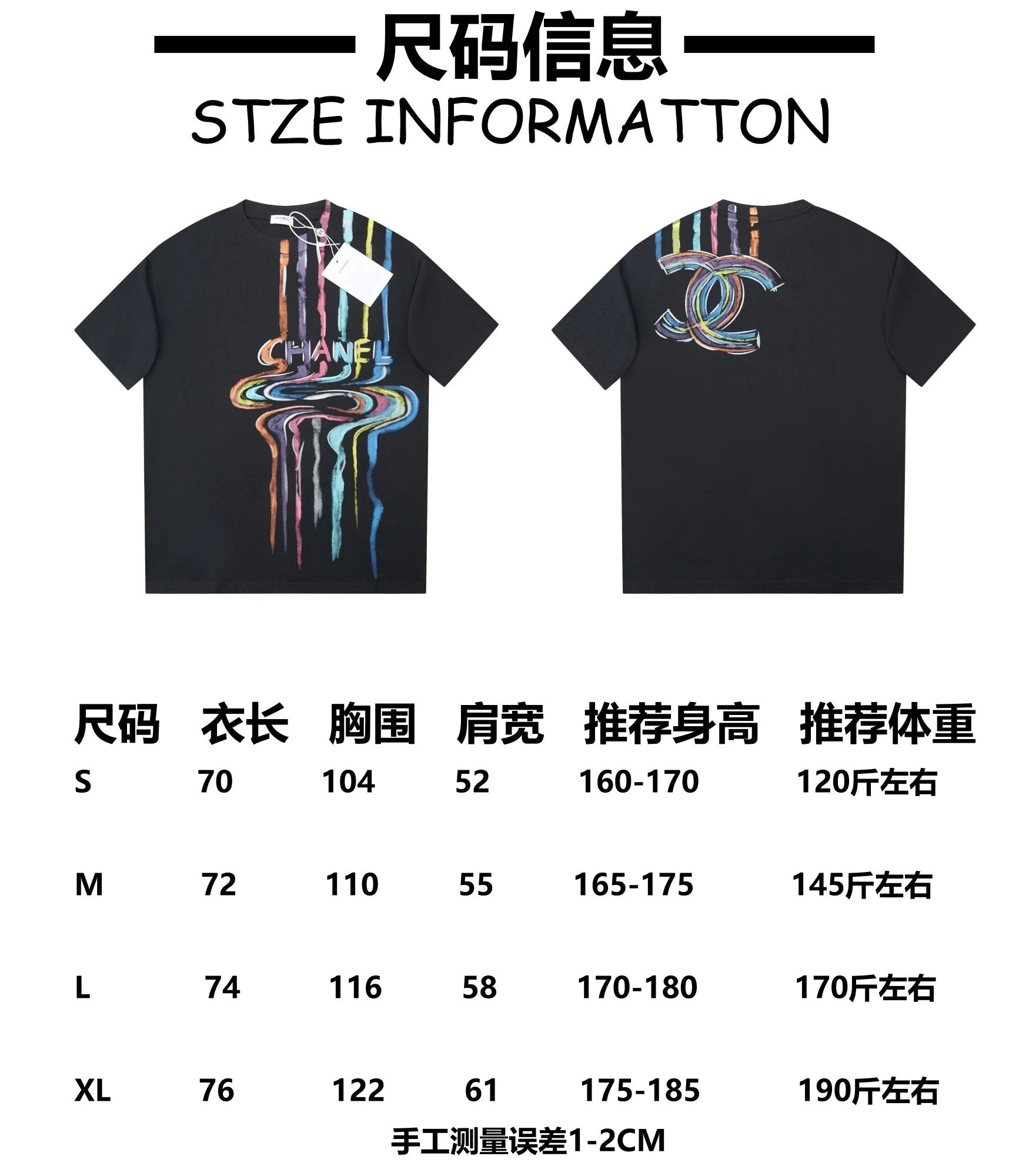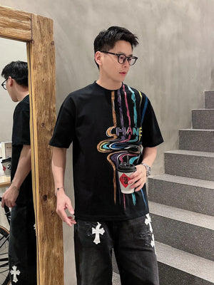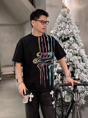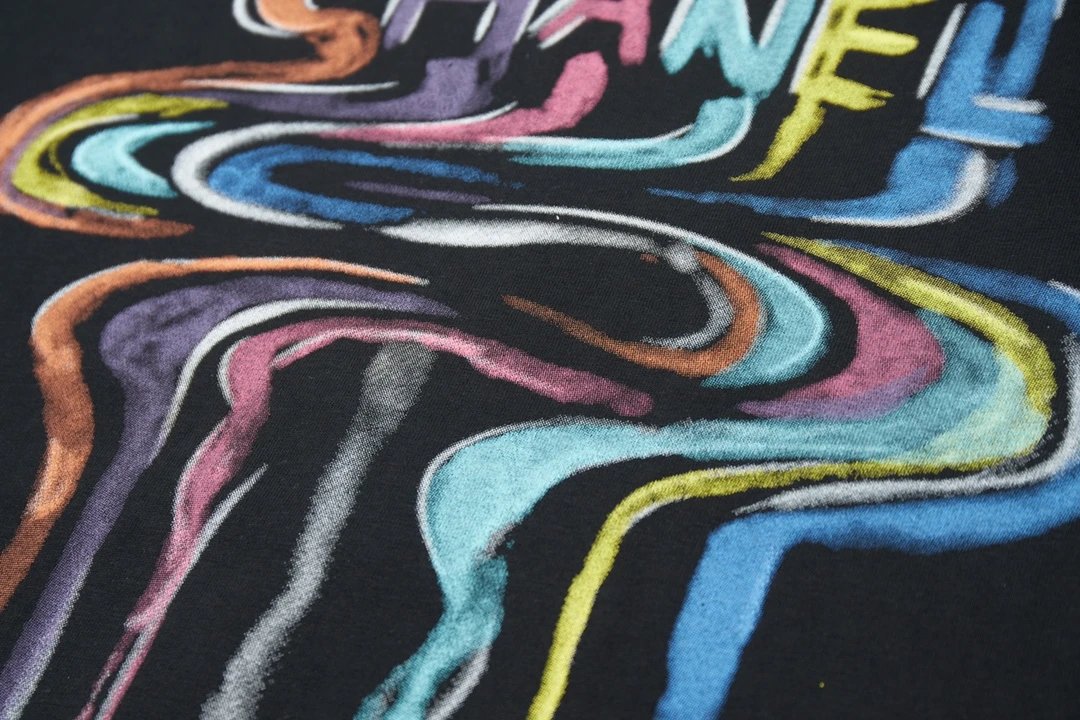 Chanel T-shirt Rainbow Pattern Print on the Chest logo round Neck Short Sleeve25ss New pure cotton T Unisex T-Shirt OS Drop Shoulder Loose Fit Base Shirt Top T-Shirt Short Sleeve