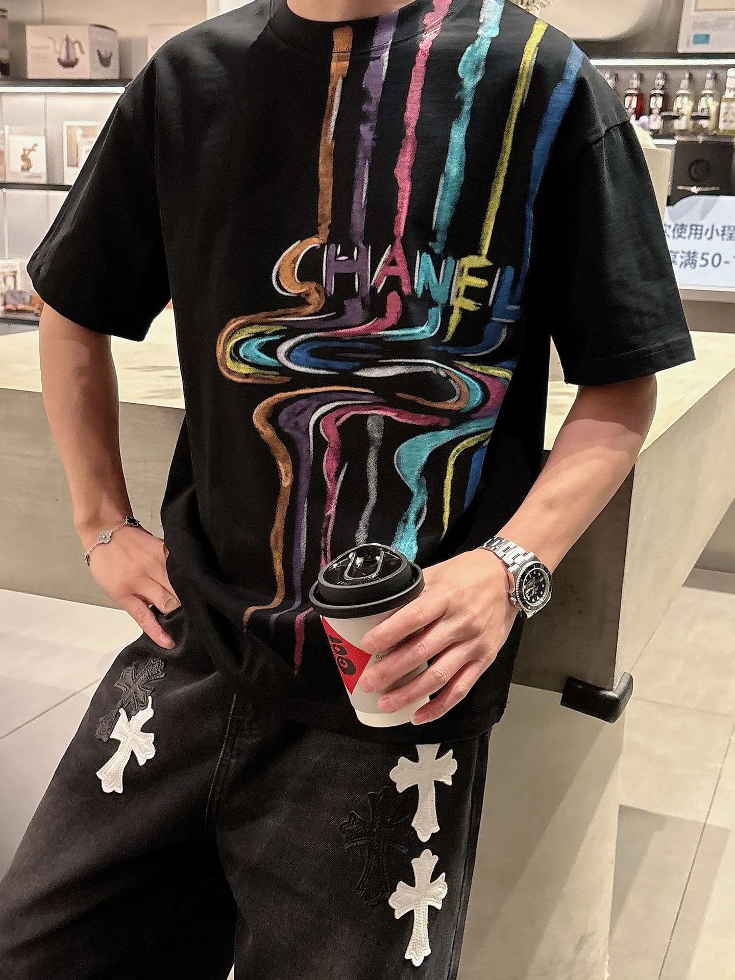 · Front and Back Hand-Painted Graffiti Style Chanel