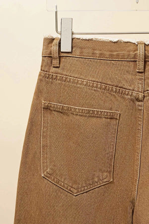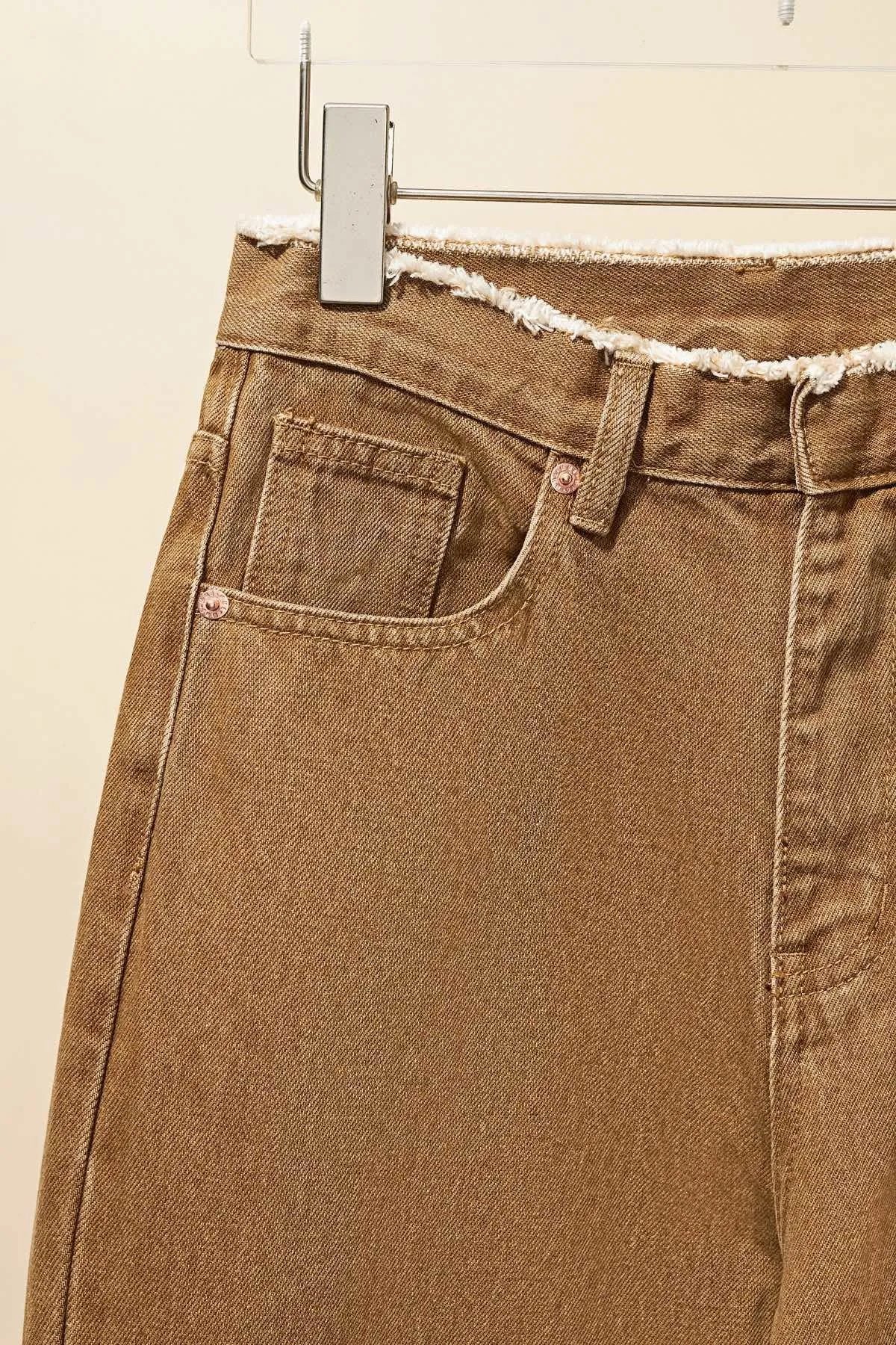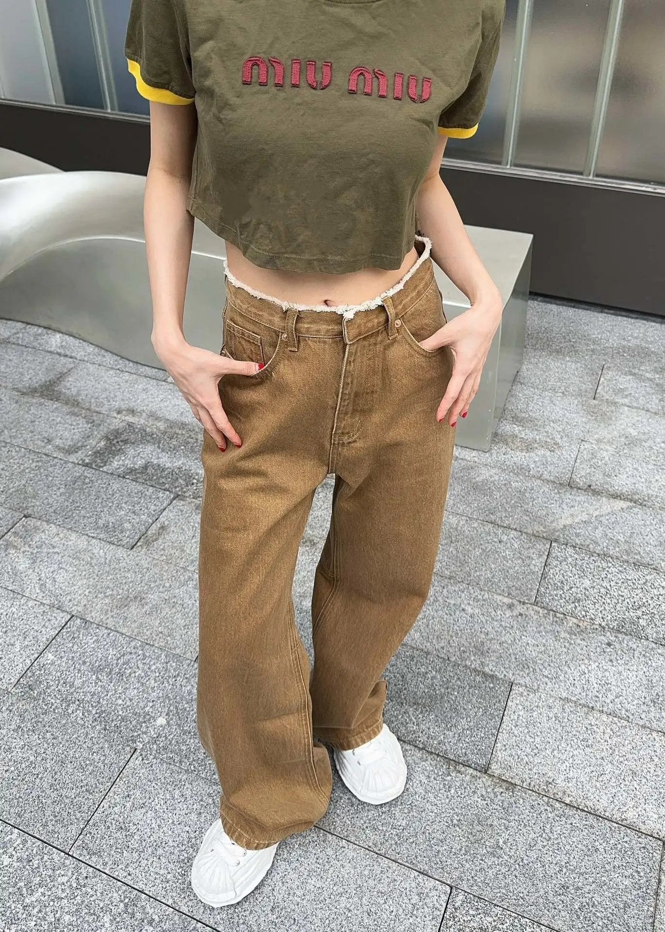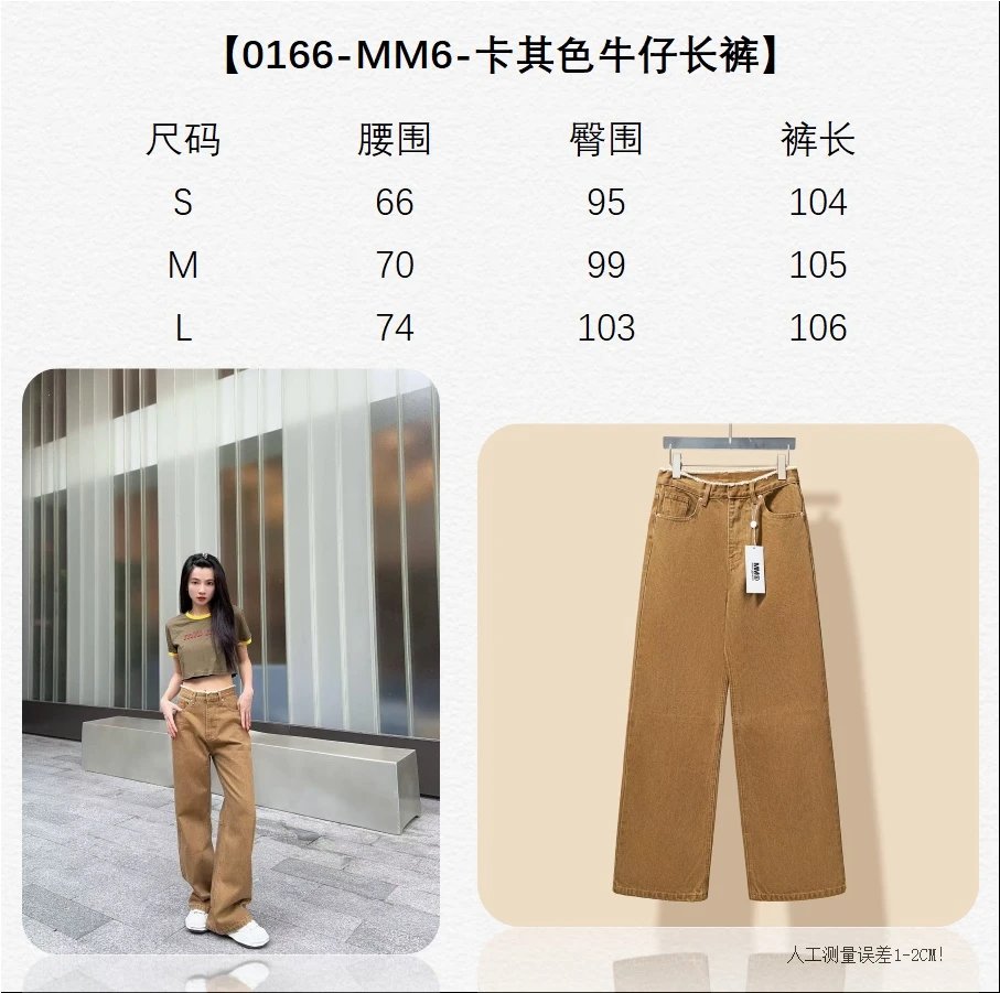 Top Version MM6 Margiela Frayed Waistband Denim Straight Long Pants Women Versatile Casual