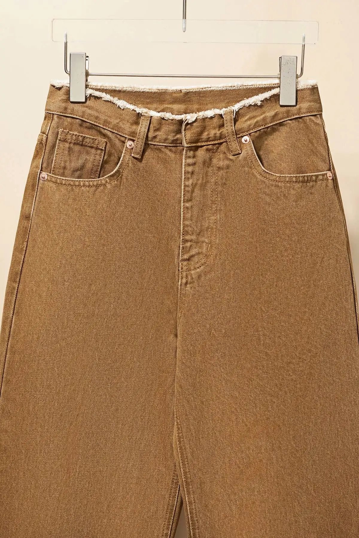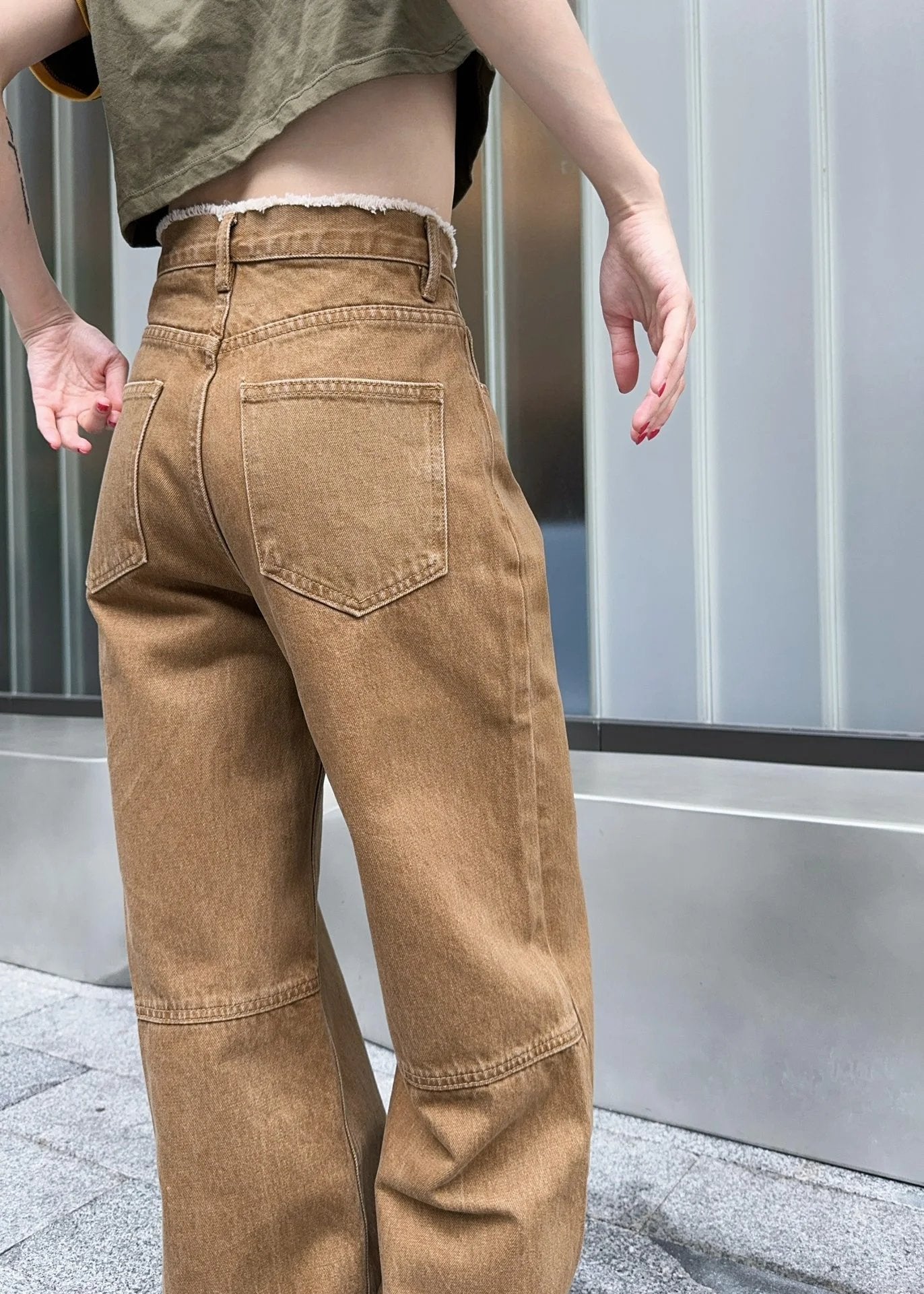 Maison Margiela Jeans Raw Hem Waistband Denim Straight Leg Pants Women Versatile Casual