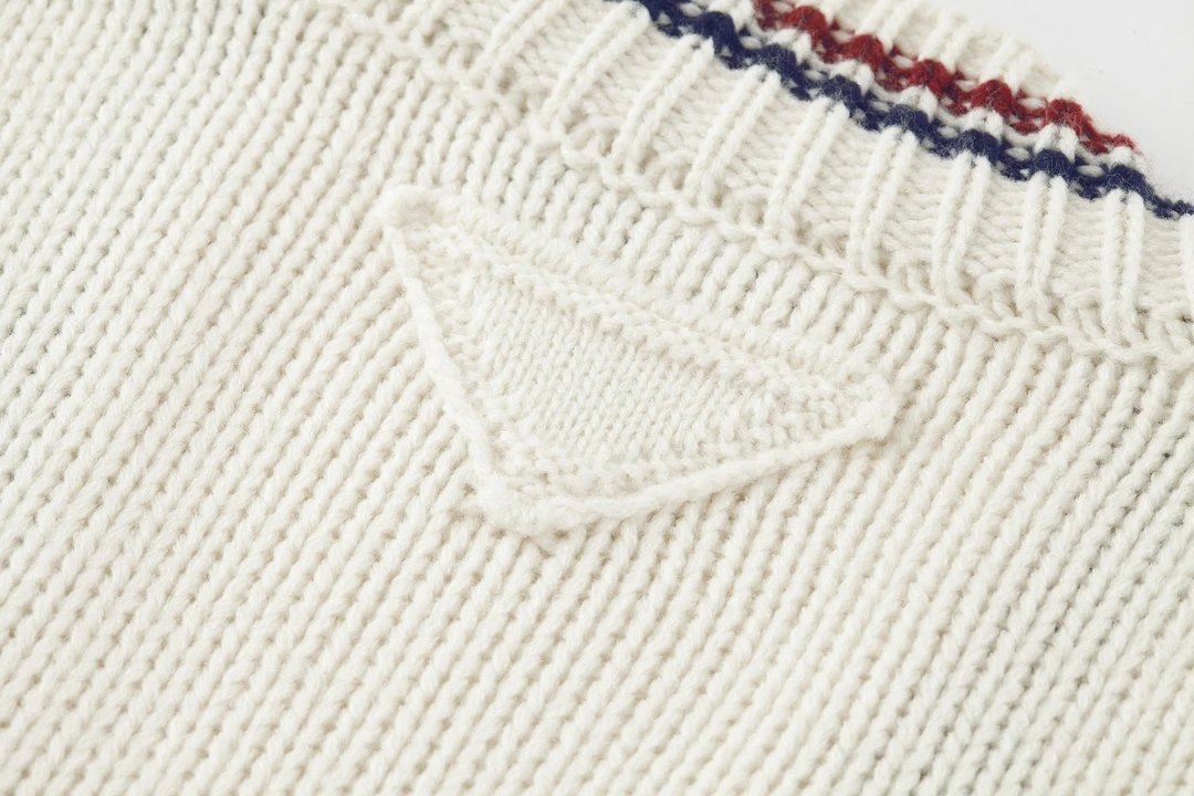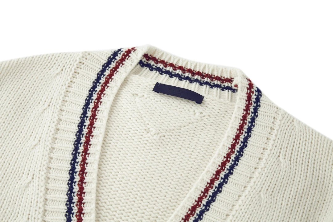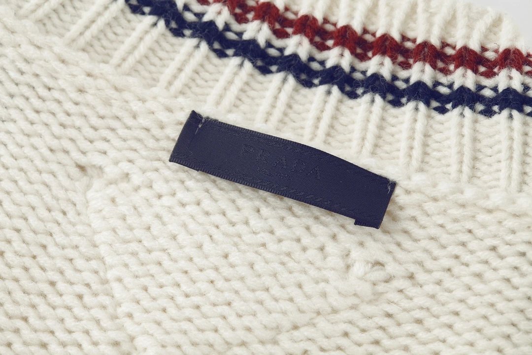 PRADA Sweater Red and Blue Striped Triangle Logo Wool Cardigan Coat Unisex Outerwear Long Sleeve Soft Lazy Style OS Loose Fit Thickened Versatile Casual Wear for Both Inner and Outer Layering
