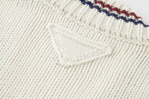 Top Version Red and Blue Striped Triangle Logo Wool Cardigan P Brand Unisex Outerwear Long Sleeve Soft Lazy Style OS Loose Thickened Versatile Casual Wear