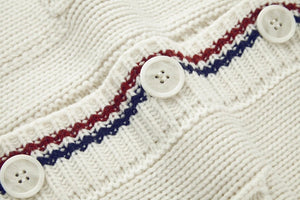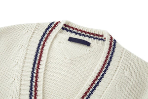 ●Flat Knitting Machine●Standard Fit●Ribbed Collar●Drop Shoulder Sleeves●Ribbed Hem●Front Button Closure