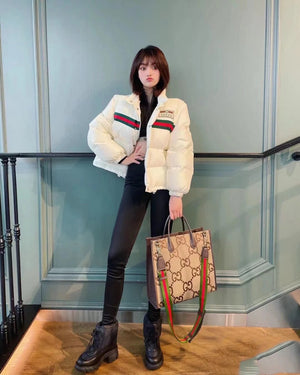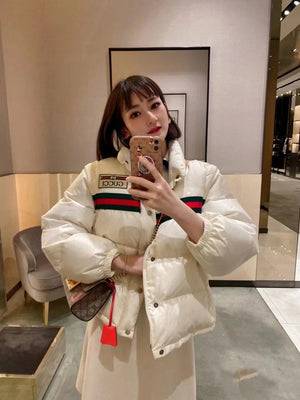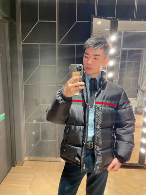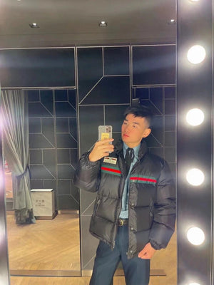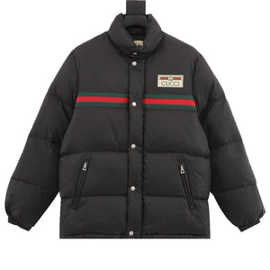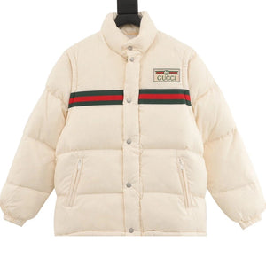 Gucci Down Jacket Red and Green Ribbon down Jacket Same Style for Men and Women