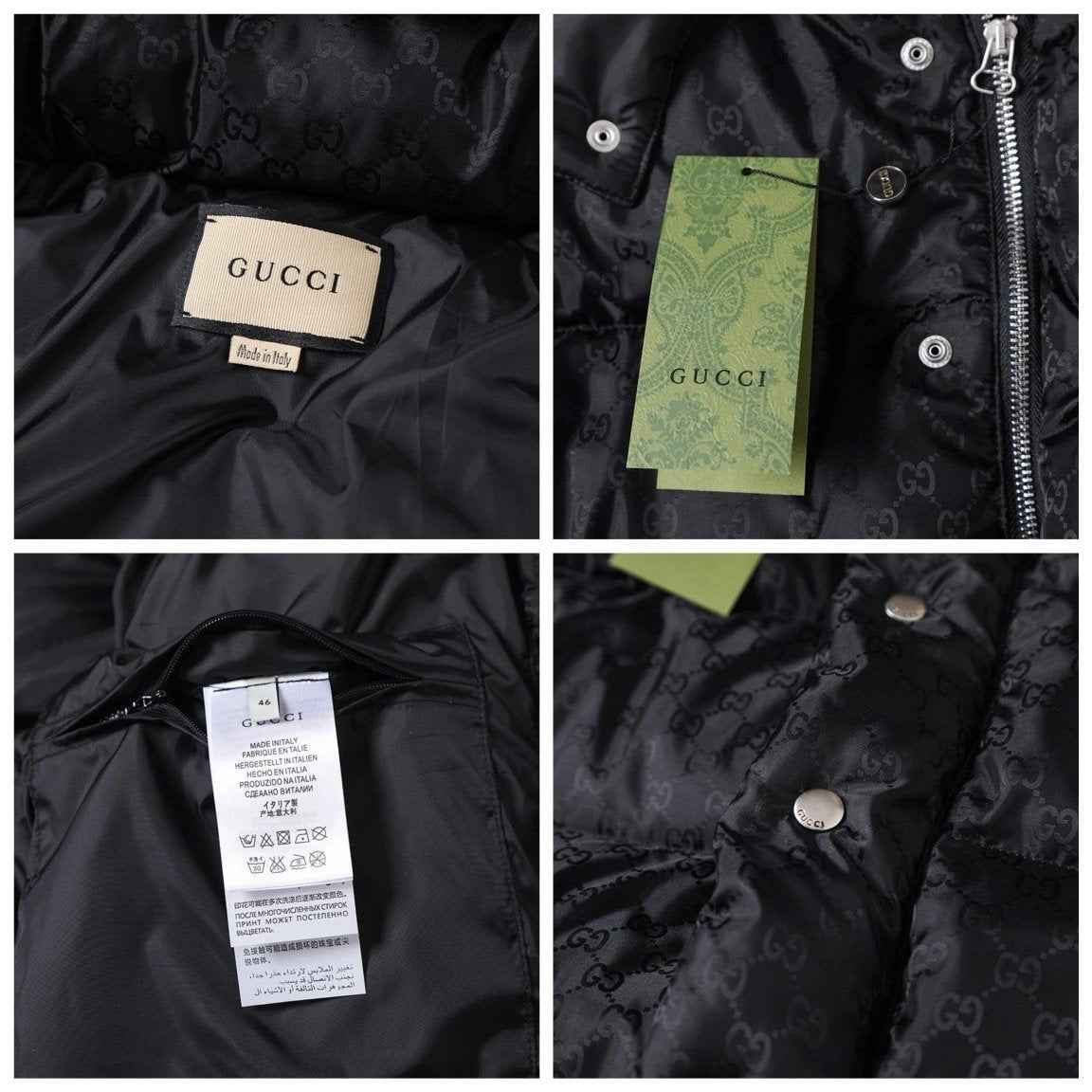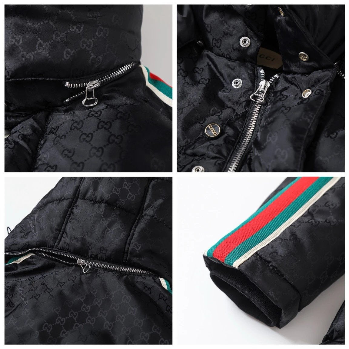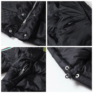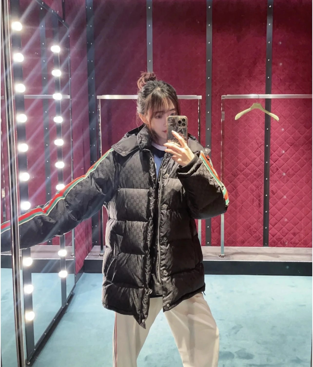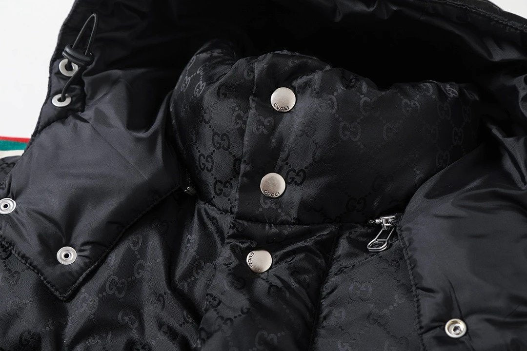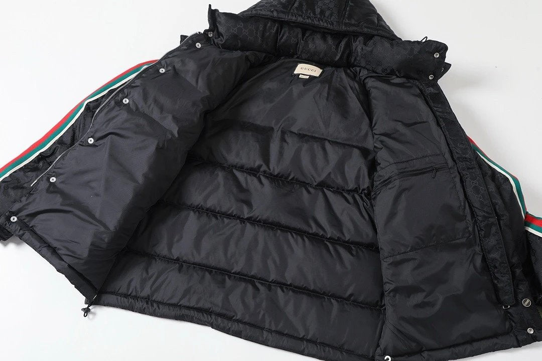 Gucci Down Jacket Red and Green Webbing Mid-Length Jacquard Element Down Jacket90White Duck Down Hooded Thickened Warm Puffer Jacket os Unisex Fit Jacket24ss New Winter Products