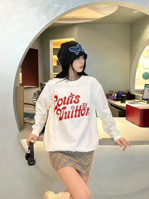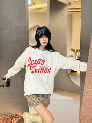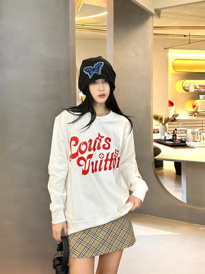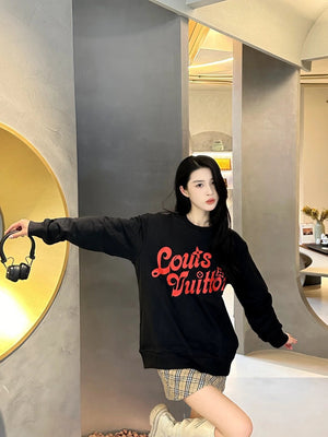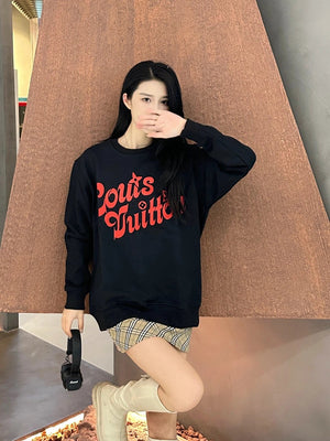 Louis Vuitton LV Hoodie Red Letters Printed Crew Neck Sweatshirt Same Style for Men and Women