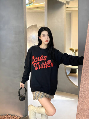 Home Louis Vuitton LV Hoodie Red Letters Printed Crew Neck Sweatshirt Same Style for Men and Women