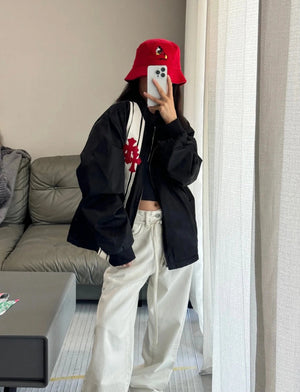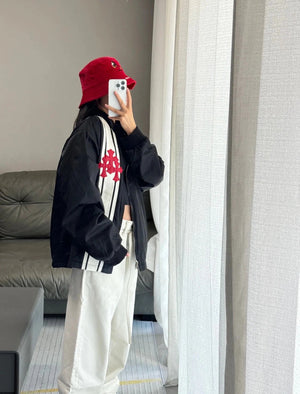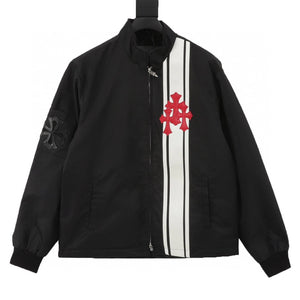 Chrome Hearts Jackets Red shi Word Frame Leather Tag Black and White Stitching and Brushed Zipper Outer Men and Women Same Style
