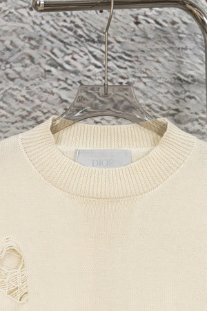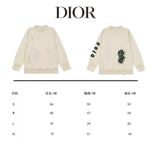 Dior Sweater Ripped Pullover Crew Neck Sweater Fashion Trend Heavy Craft logo Embroidered Color-Block Long Sleeve Thickened Lazy Style Unisex Loose Knit Top Jacket Versatile Casual Wear
