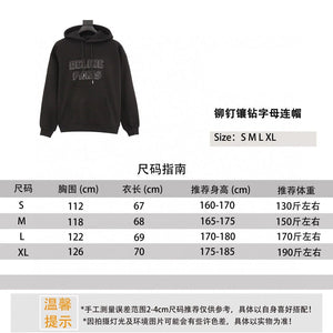 Celine Hoodie Rivets with Diamonds Letter Hooded Sweater for Men and Women