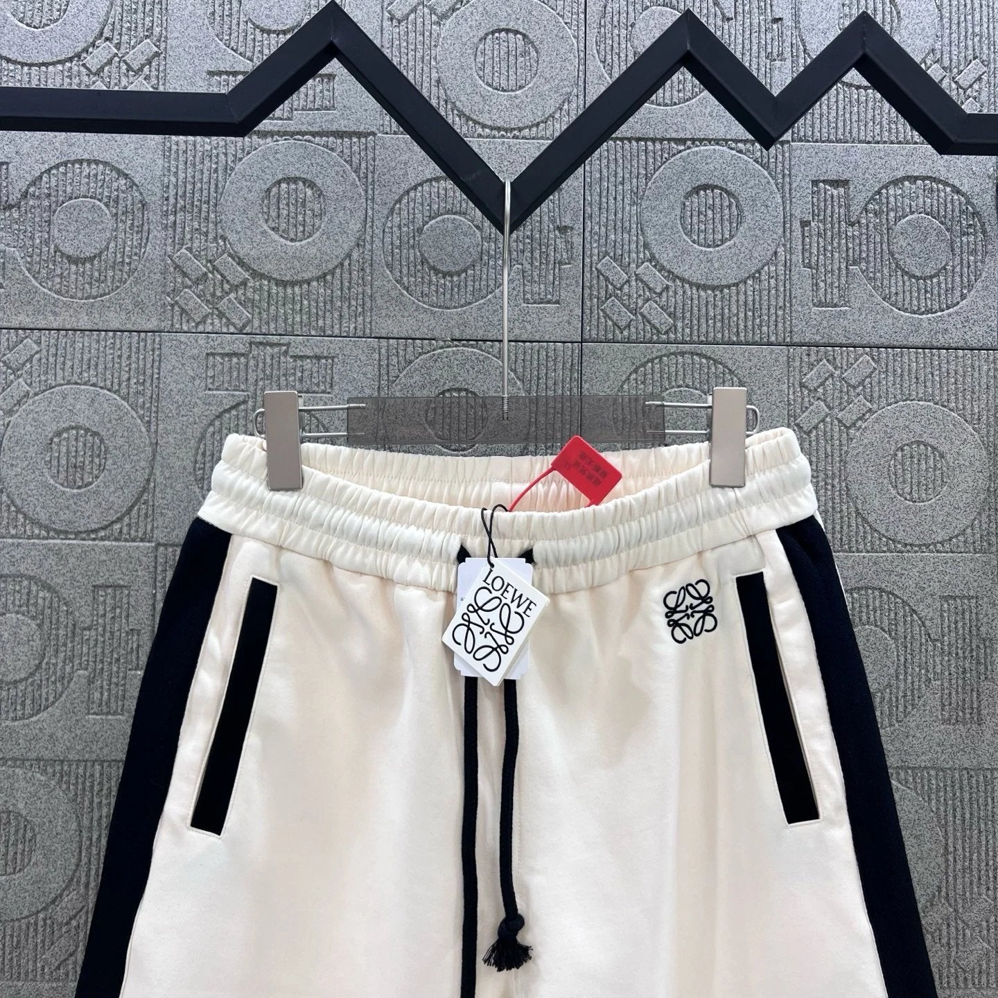 LOEWE Shorts Side Color Block Ribbon Embroidery logo Five-point Shorts25ss New Drawstring Casual Pants for Men and Women, Summer Style5Two-in-One Casual Sweatpants Pure Cotton Joggers