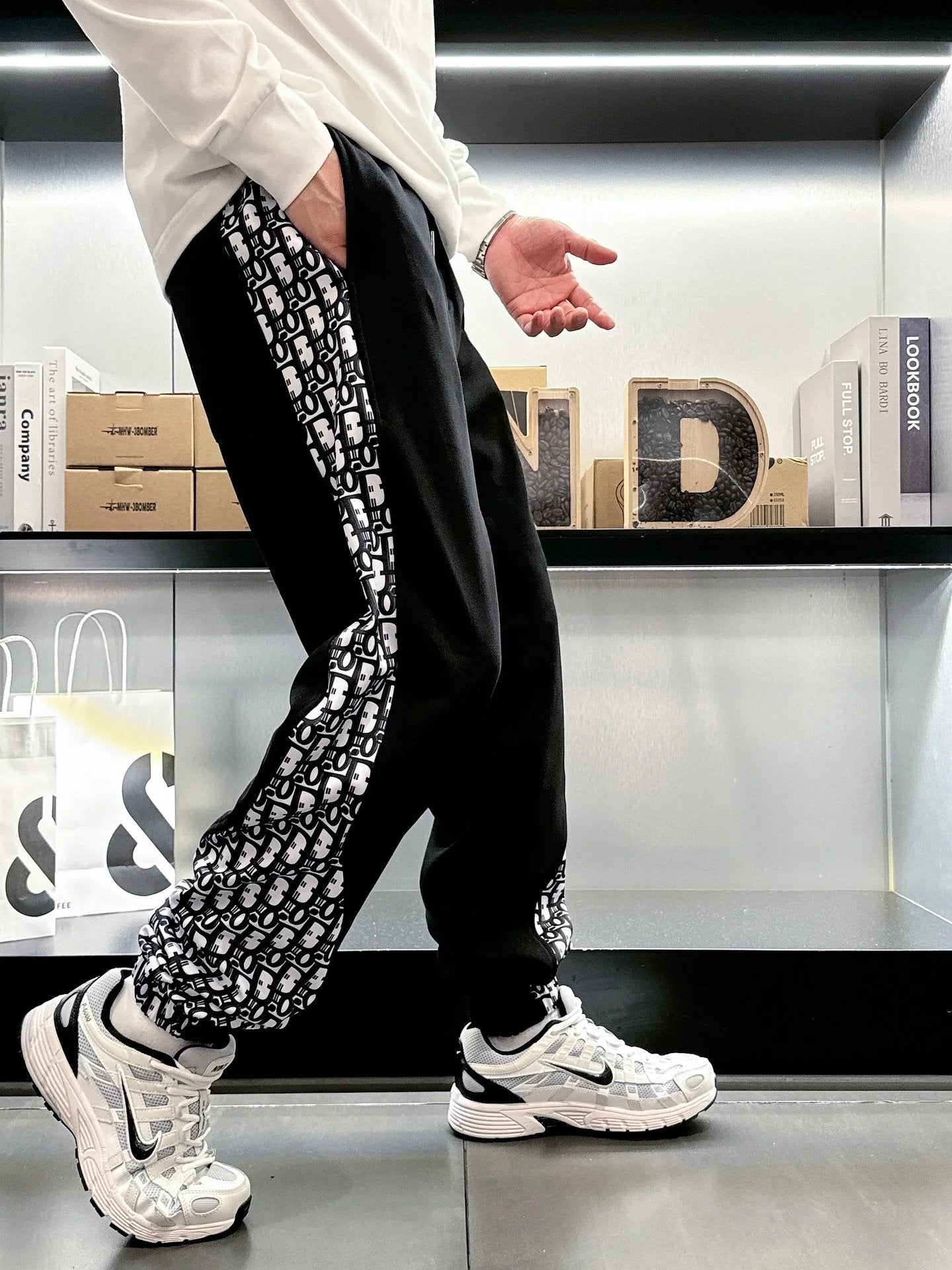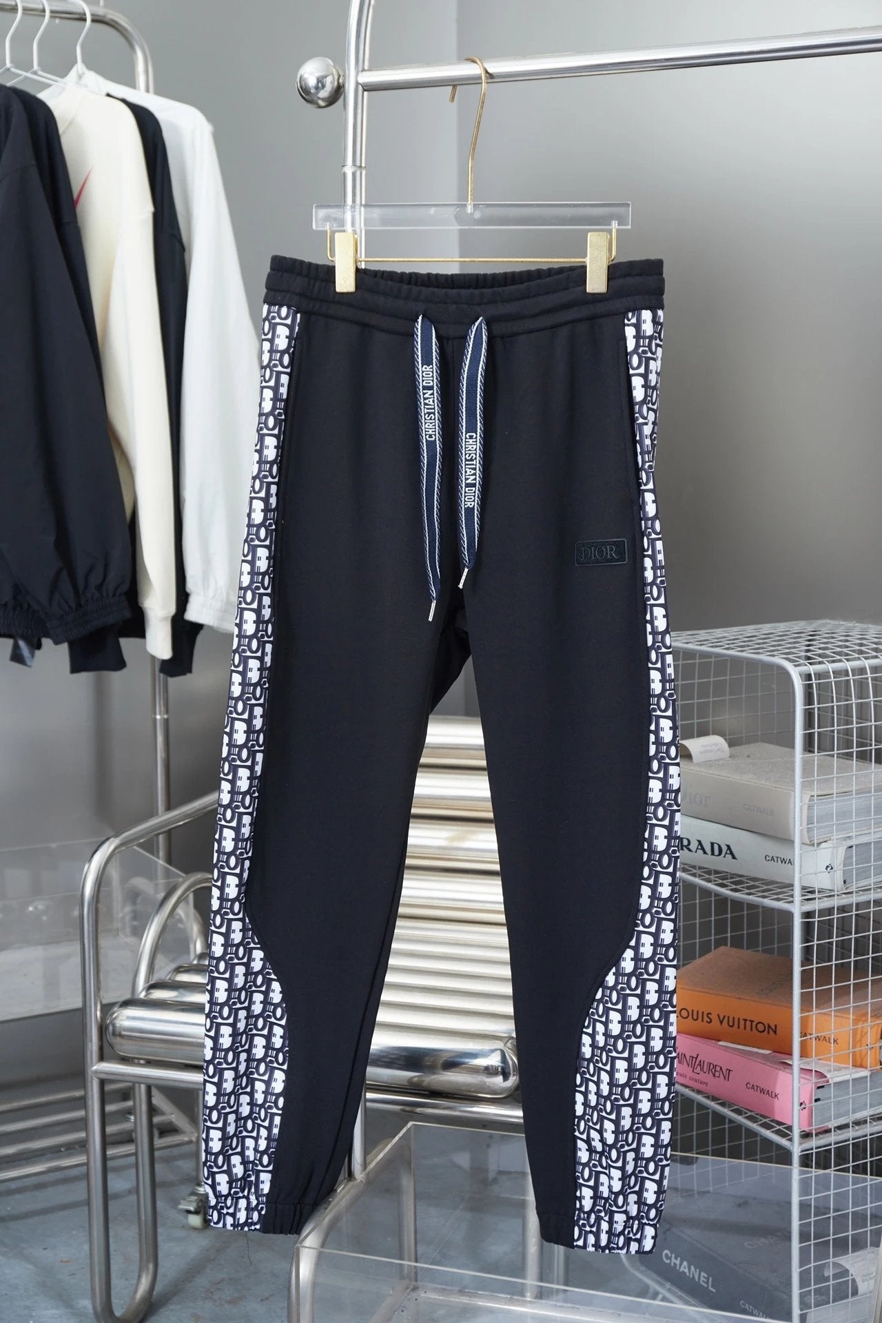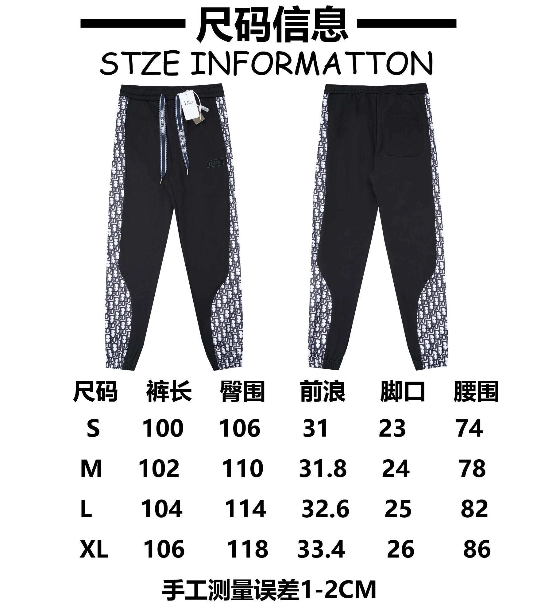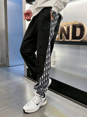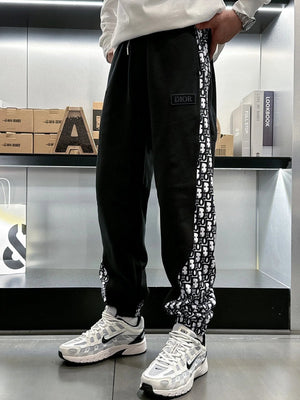 Top Version Dior Christian Di * R CD Side Presbyopic D Home Ankle-Tied Sweatpants Sports Pants Autumn Men's and Women's Same Long Pants Drawstring Winter Loose plus Size Casual Pants High Waist Contrast Color