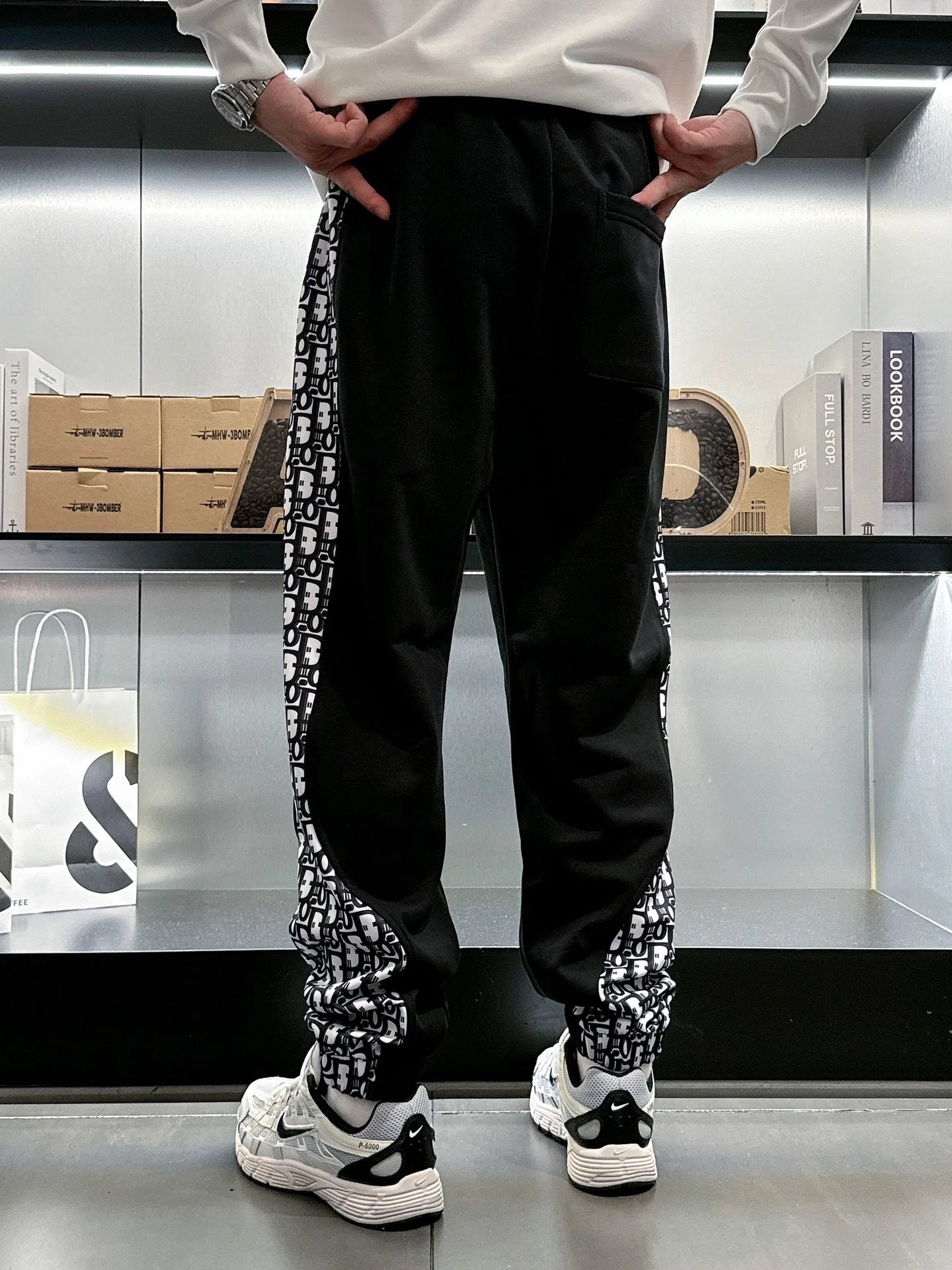 Dior Sweatpants Side Old Flower Drawstring Jogger Pants Sports Pants Autumn Unisex Long Pants Drawstring Winter Loose Plus Size Casual Pants High Waist Color Block
