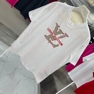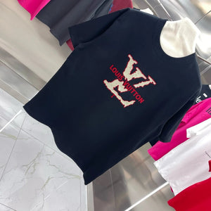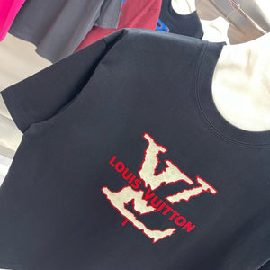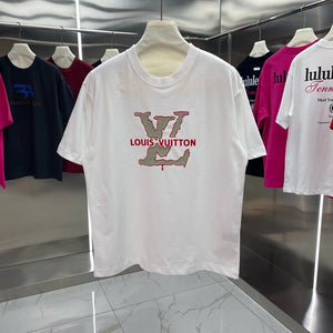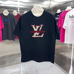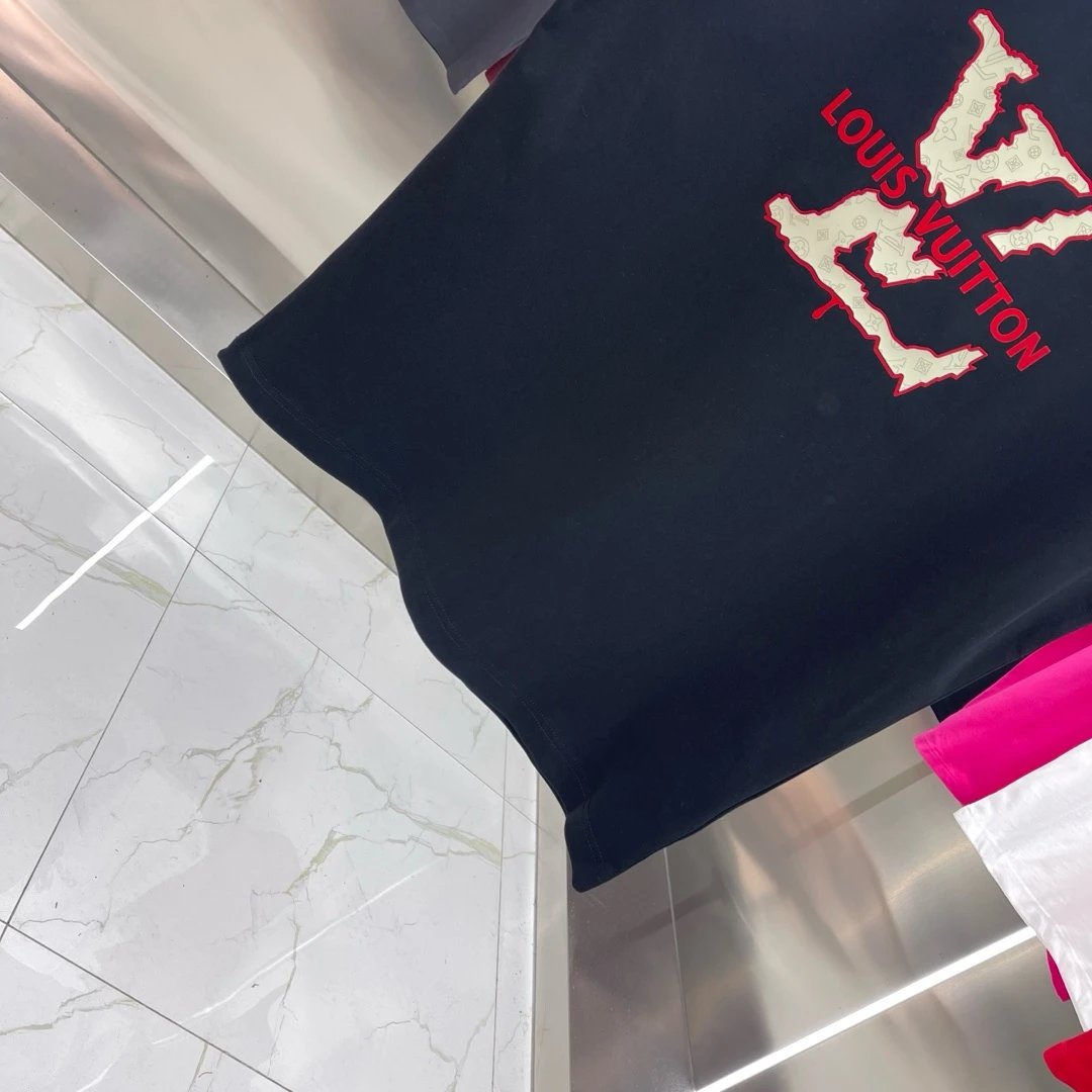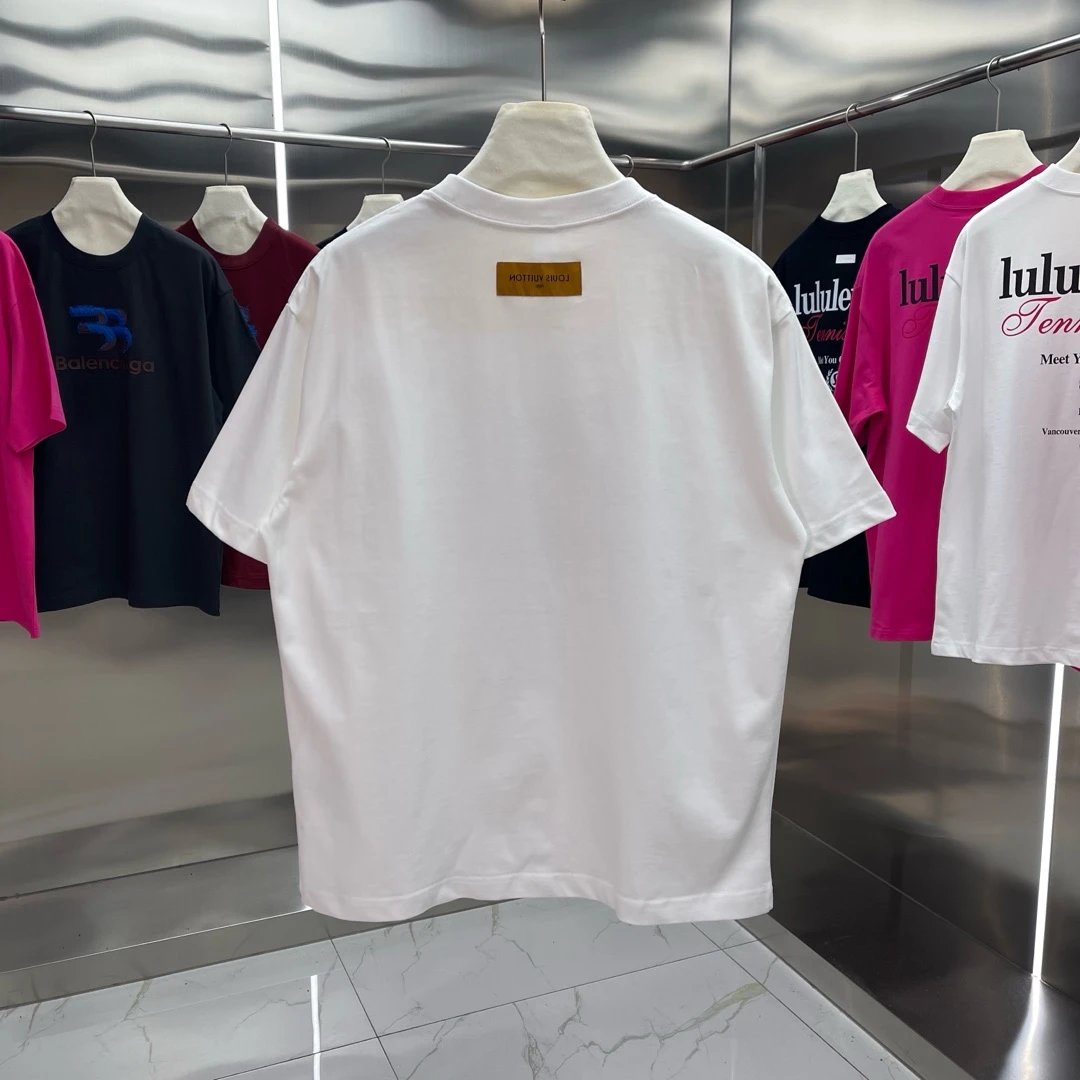 Louis Vuitton LV T-shirt Silicone 3D Flocking Process Round Neck Short Sleeve25ss New Pure Cotton Unisex Style T T-shirt OS Loose Fit Base Shirt G Home Top Half Sleeve T-Shirt