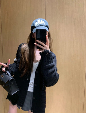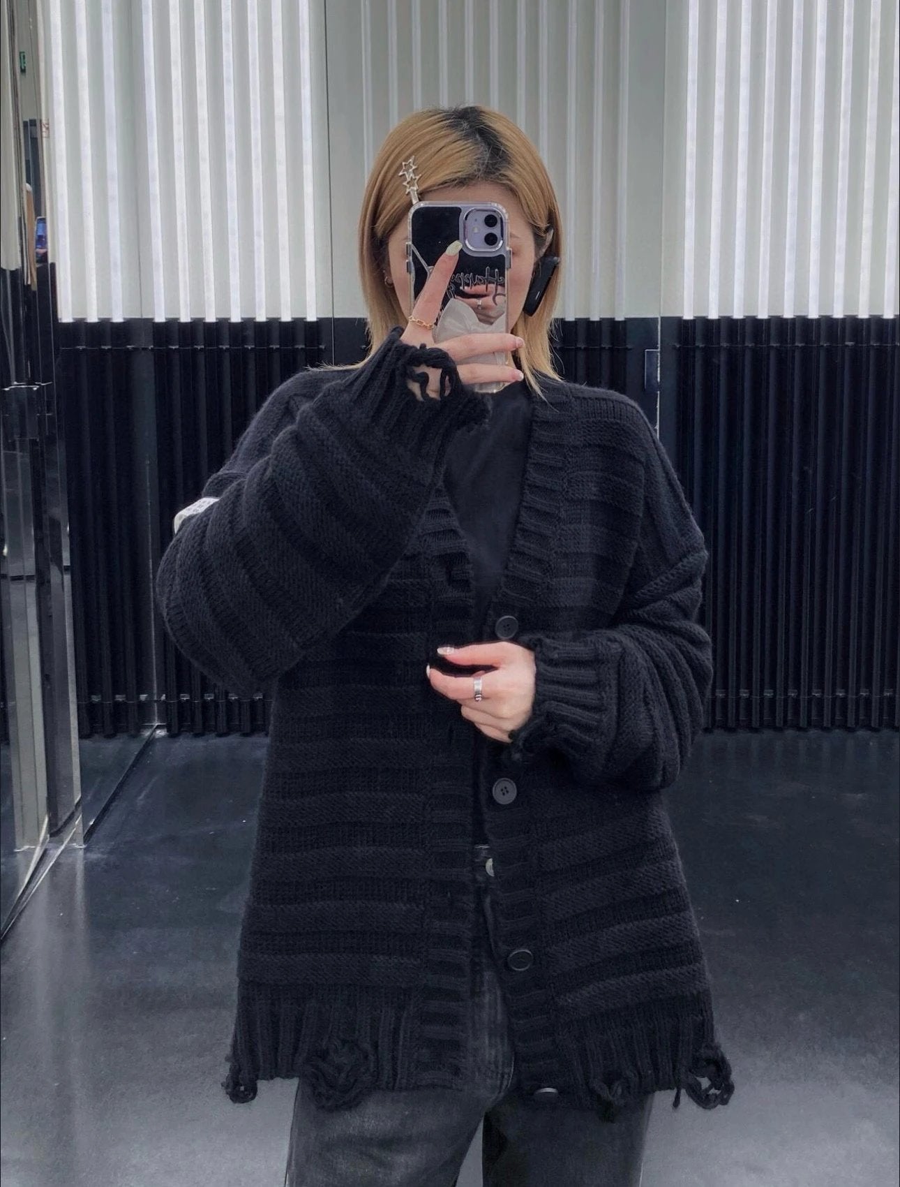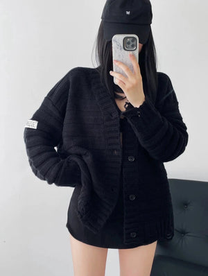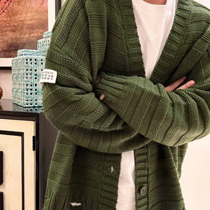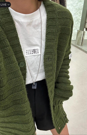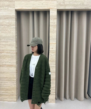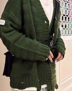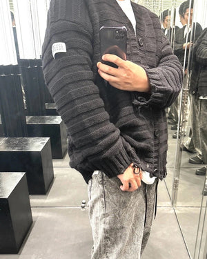 Sleeve Badge Distressed Cardigan Sweater Loose Versatile Knitwear V-neck Jacket Coat OS Style Sweater Unisex 24SS Autumn Winter New Arrival