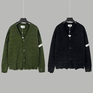 Maison Margiela Sweater Sleeve Patch Distressed Cardigan Sweater Loose Versatile Knitwear Large V Collared Jacket Coat os Unisex Sweater with Various Styles24ss Autumn and Winter New Products