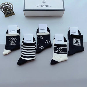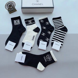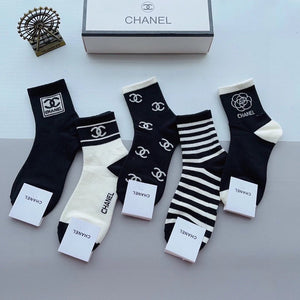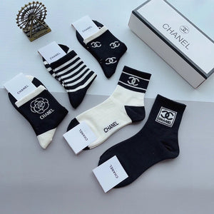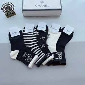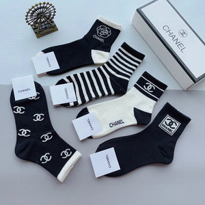Chanel Sock Socks with Packaging(a Box5Double) Classic Mid-Length Socks❗️High Version Pure Cotton Material Is Soft,Seckill Market Ordinary Goods,Classic Double C Pattern logo,Counter Synchronous Socks