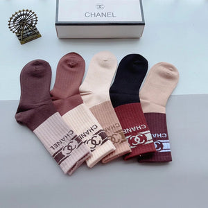 Chanel Sock Socks with Packaging(a Box5Double) New High-End Wool Long Socks!Popular Letter Counter Synchronization Stockings