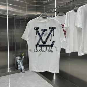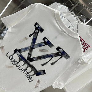 Louis Vuitton LV T-shirt Spray Paint Graffiti logo round Neck Short Sleeve25ss New Pure Cotton Unisex Style T T-shirt OS Loose Fit Base Shirt Short Sleeve T-Shirt Top