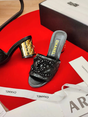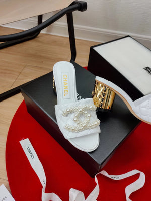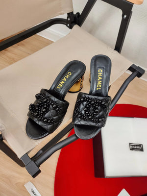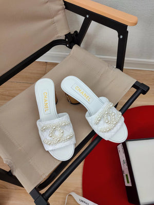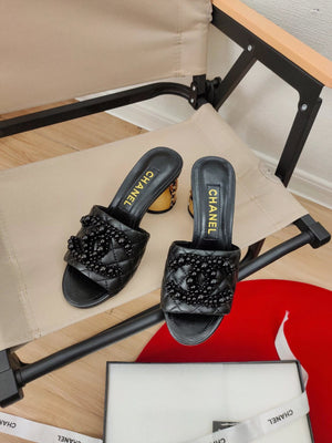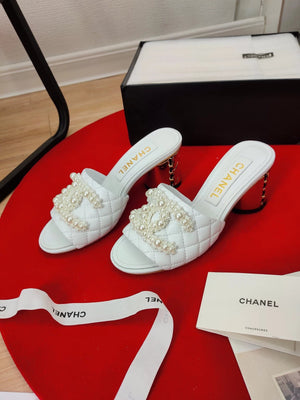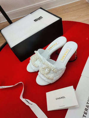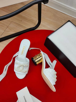 Chanel Shoes Spring and Summer New High Heel Slippers Every Summer's Sandals Are an Essential Travel Item for Girls.,Super Beautiful Pearl logo Decoration,Full of Fairy Air,This Sandal Is Very Comfortable on the Feet,Very Thin,