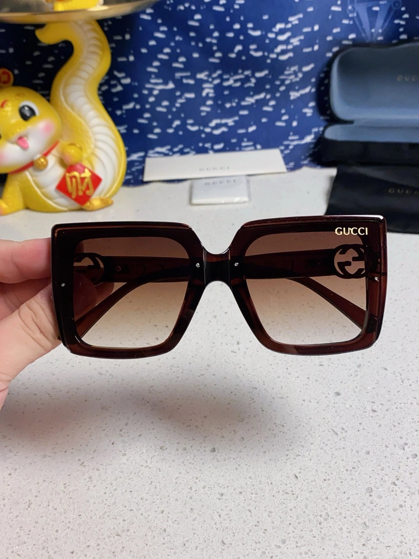 Gucci Sun Glasses Mirror Women's New Big Glasses 2025 Fashion European and American Style Slimming Frame Fashionable Face UV-Proof round Face before Buying